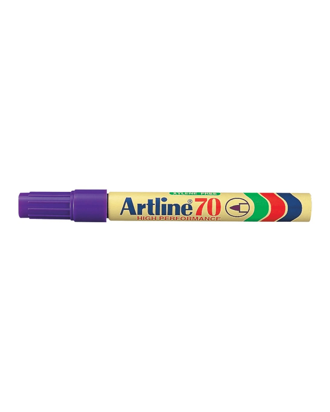The Artline 70 Permanent Marker is ideal for marking a variety of porous and non-porous surfaces including steel, glass, cardboard and wood. It has a bullet tip so you can control your strokes easily.