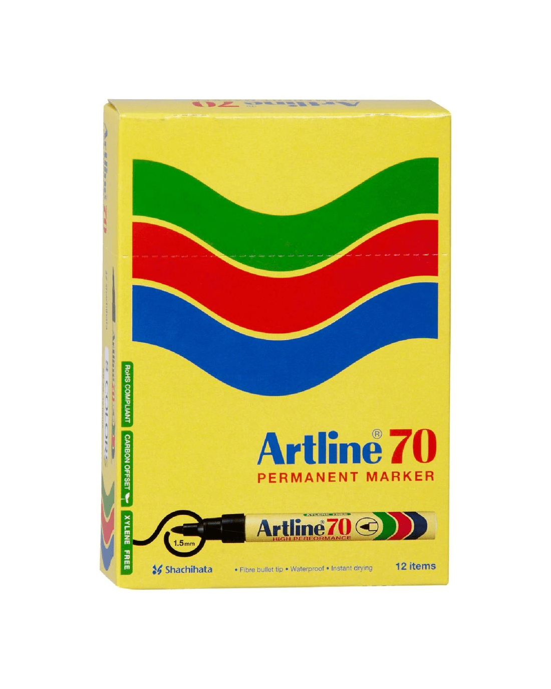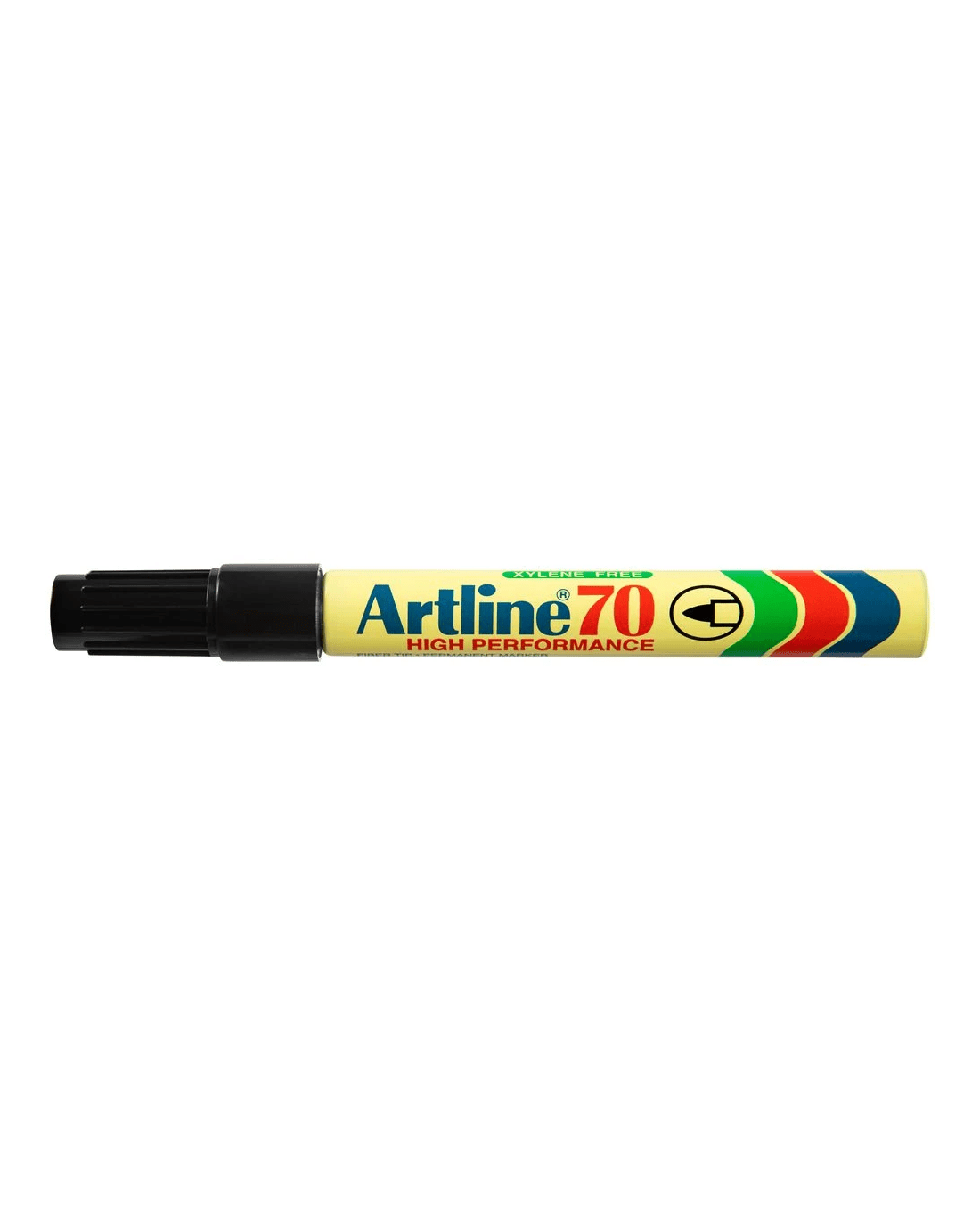 The Artline 70 Permanent Marker is ideal for marking a variety of porous and non-porous surfaces including steel, glass, cardboard and wood. It has a bullet tip so you can control your strokes easily.