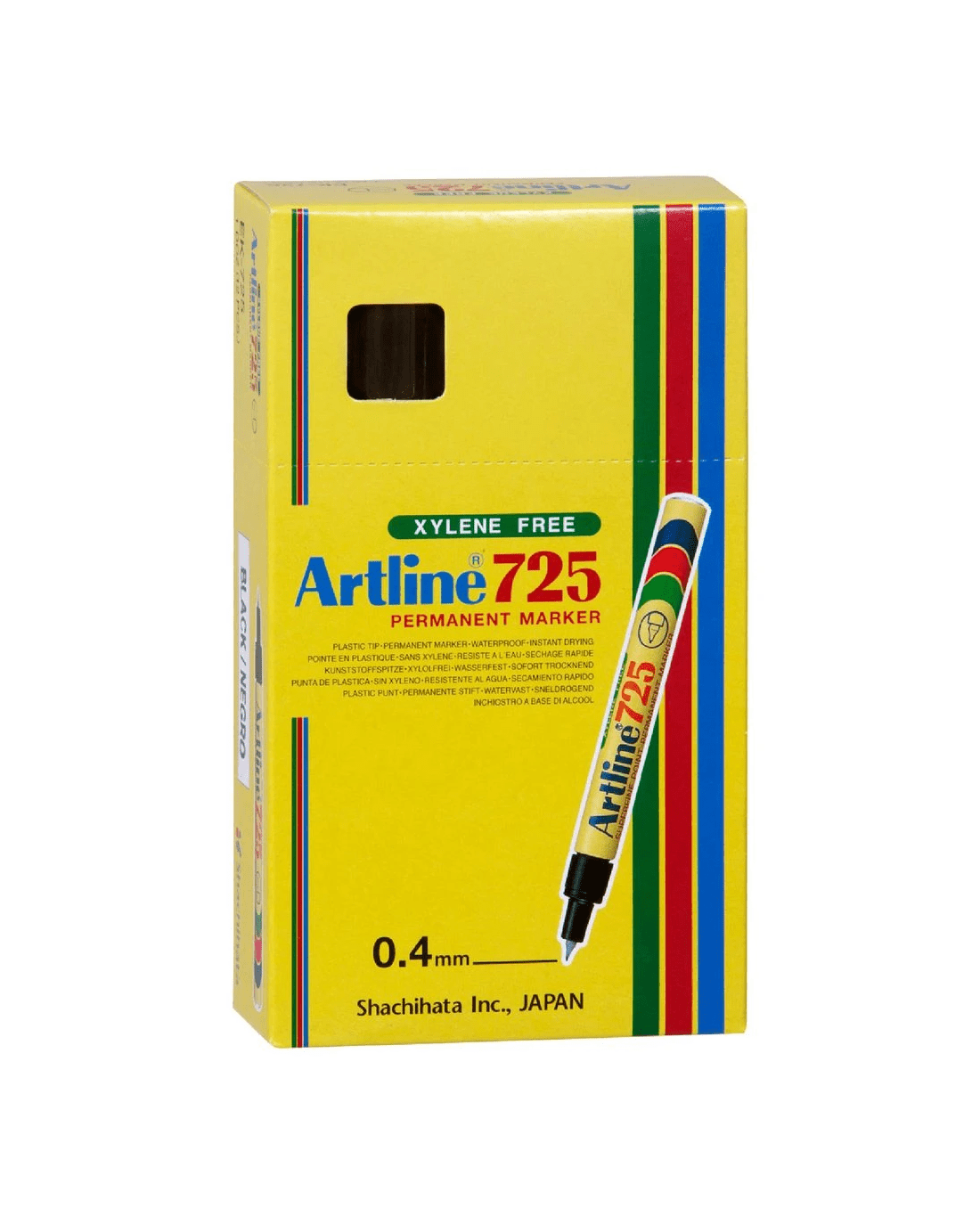 These Artline 725 Permanent Marker draw super fine, 0.4 mm lines from a slim, aluminium barrel. The ink is quick drying, has a low odour, is xylene free and is RoHS compliant. There are 12 black pens in this pack.