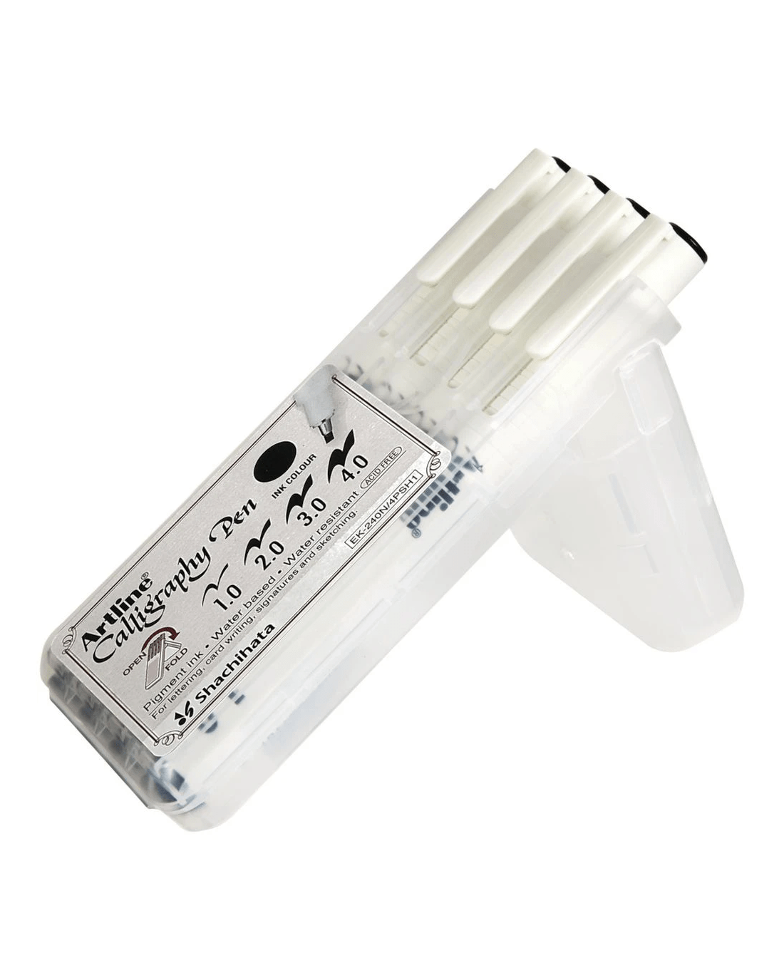 Sold by OfficeworksArtline Calligraphy Pens Assorted Nibs Black 4 Pack