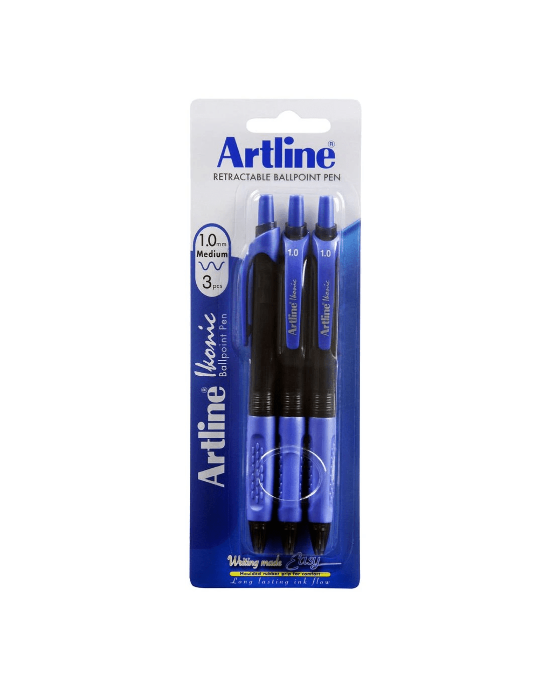 Artline Ikonic Retractable Ballpoint Pen Blue 3 Pack