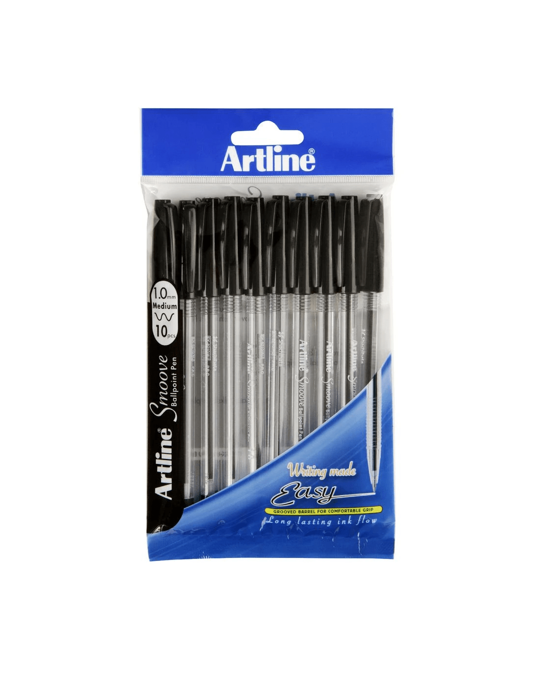 Artline Smoove Ballpoint Pens contain high quality oil-based ink which delivers a smooth writing experience. Each pen has a clear barrel which lets you see how much ink is left so you'll always know when to replace your pen. You can stock up at once with this handy pack of 10 pens.
