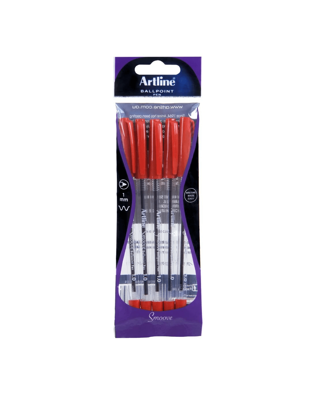 Artline Smoove Ballpoint Pens contain high quality oil-based ink which delivers a smooth writing experience. Each pen has a clear barrel which lets you see how much ink is left so you'll always know when to replace your pen. You can stock up at once with this handy pack of 5 pens.