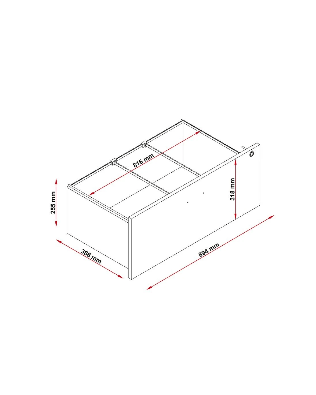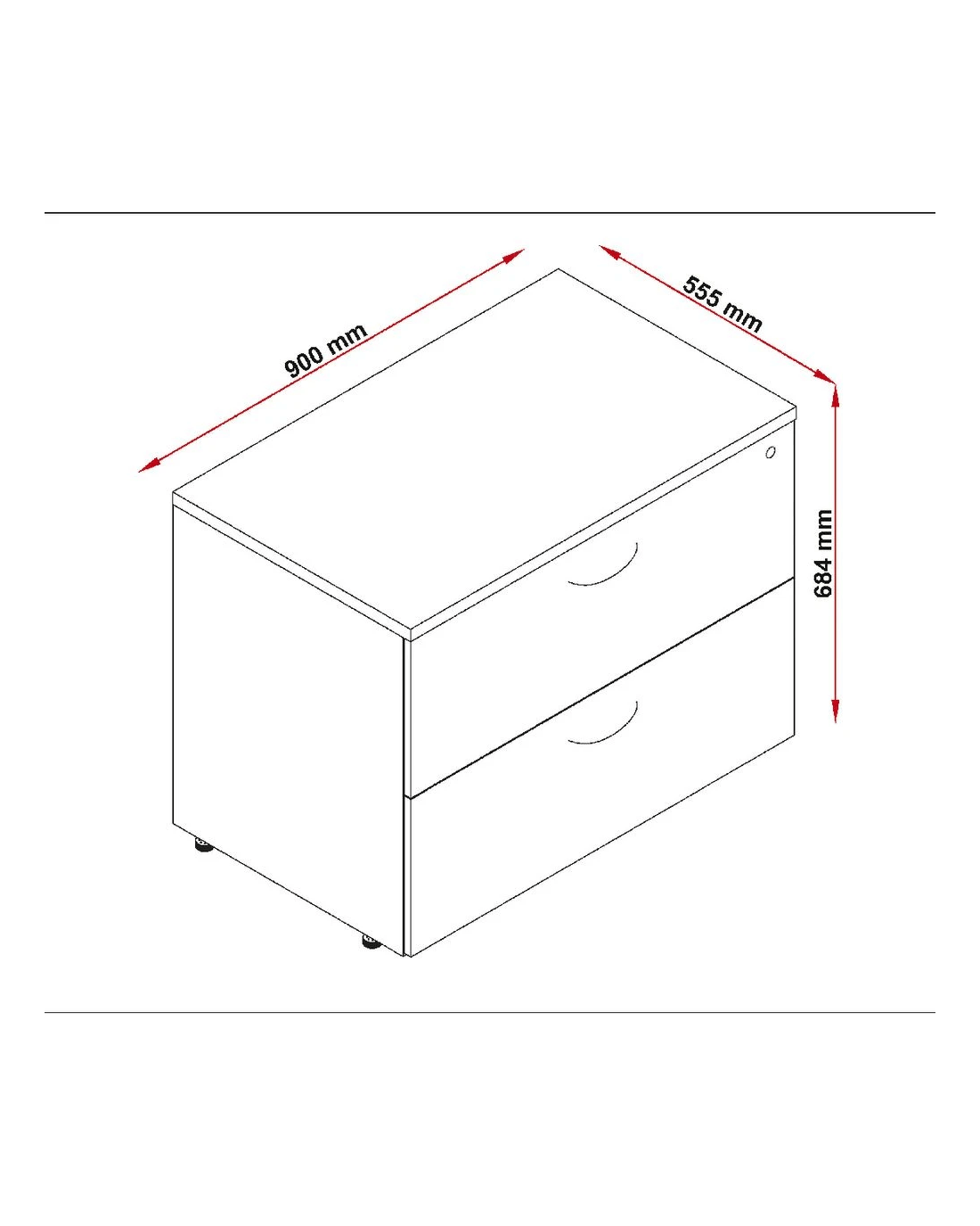 - Once assembled, this cabinet measures 900 W x 555 D x 684 H mm.