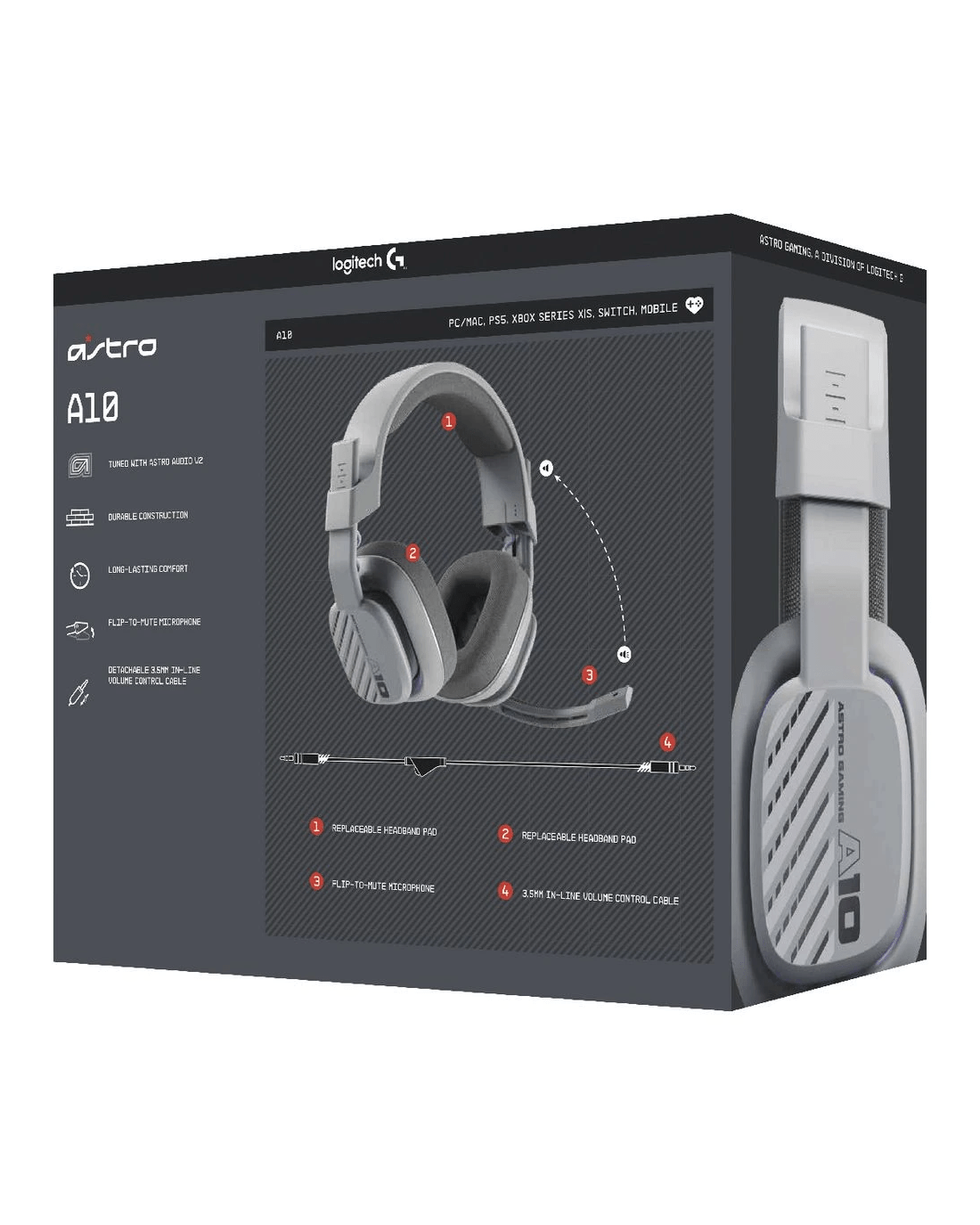 Enhance your everyday gaming setup with the ASTRO A10 Gen 2 Headset. Consider it the next evolution of the equipment you already use on a daily basis. Explosive audio thanks to 32mm dynamic drives, flip-to-mute boom mic, and durable construction with replaceable ear cushions and headband pad combine for an unforgettable audio experience. No need to worry about popping those Ps or purchasing another headset when things start feeling a little rundown. Buckle down for all-night gaming sessions thanks to the A10's ergonomic construction, with closed back design, supported with sturdy construction and an ultra-durable, comfortable headband that may just outlast your old favorite headset. Adjust your audio without leaving your seat with an inline volume control so you never miss a single moment of the action.