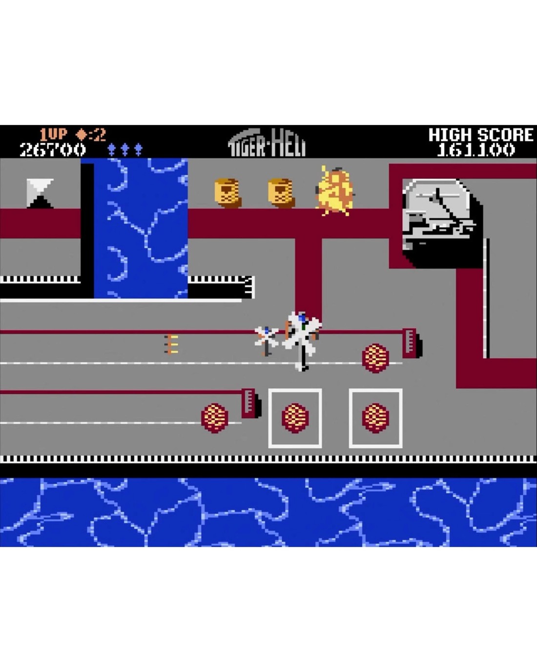 FLY. BLAST. BATTLE. The mission is critical, time is running out, and the enemy is growing stronger. The highly advanced Tiger-Heli, an armed-to-the-teeth chopper, is the only craft that can handle this challenge. Fly and hawk your way over dangerous terrain as enemy fire relentlessly targets your position. Use powerful blasters and bombs to cripple their defences, destroy their strongholds, and blast your way to victory. It's an intense, non-stop arcade experience! Tiger-Heli is a vertically scrolling shoot-'em-up where players control a helicopter through various stages filled with enemies, obstacles, and powerful bosses. The game delivers intense action, tight controls, and the challenge of navigating waves of enemy fire. This new version of the arcade classic is available for Atari consoles (2600+, 7800+, and 7800) for the first time and has been designed to optimize the hardware capabilities of these machines. With accessible, straightforward controls, gamers can jump right in and start blasting away - but beware, while it's easy to pick up and play, it's much more difficult to master!