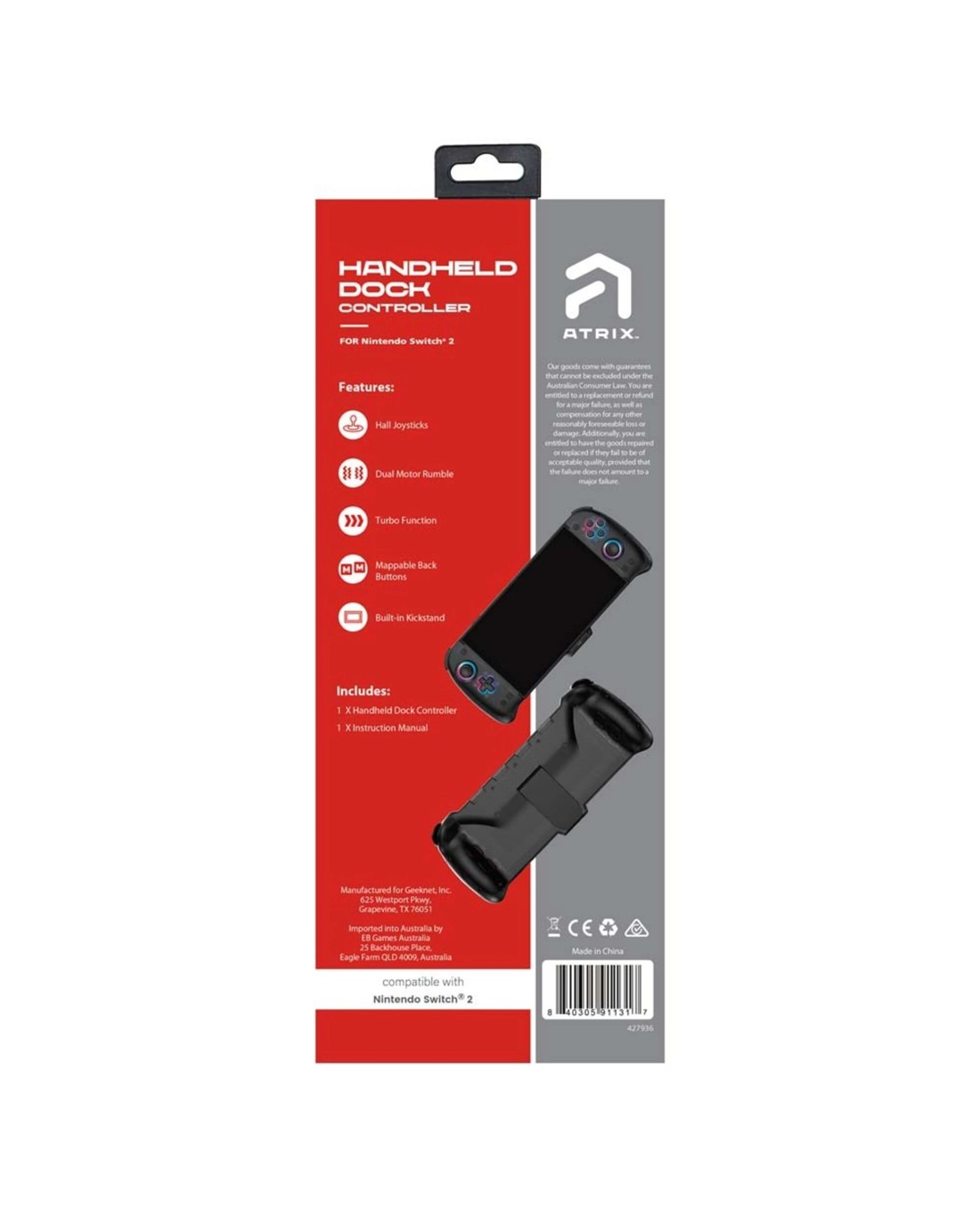 Elevate your Nintendo Switch 2 experience with the Atrix Handheld Dock Controller-a dynamic grip solution designed to turn your console into a pro-style handheld system. Whether you're on the move or relaxing at home, this controller delivers enhanced precision, comfort and immersive features that redefine portable play.
