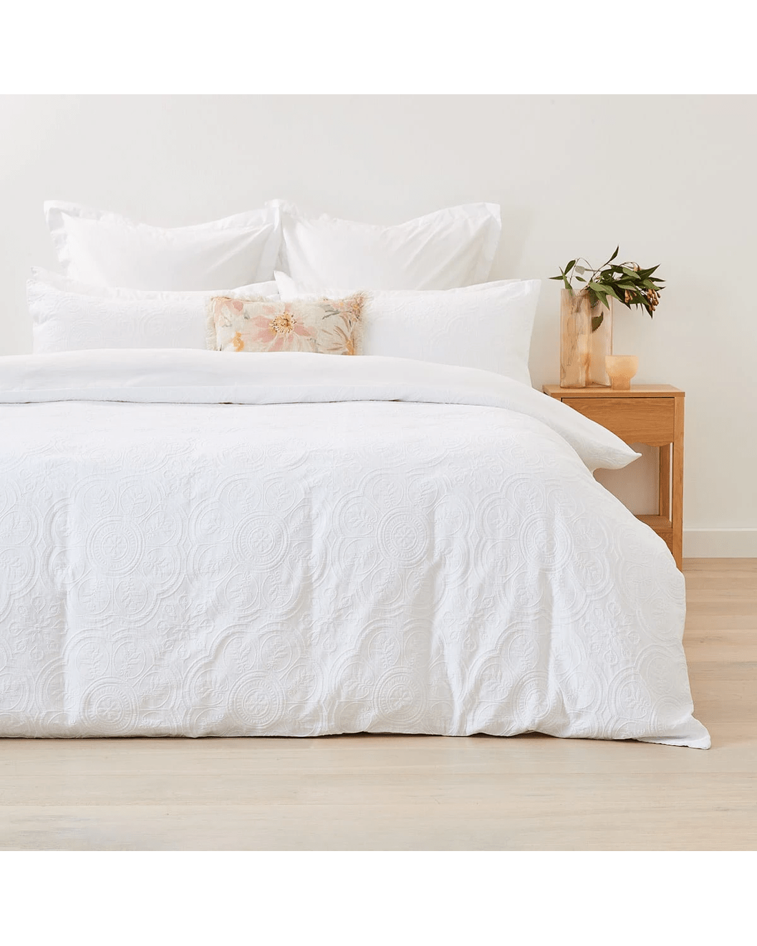 Add warmth and elegance to your sleeping space with this Aura Cotton Quilt Cover Set - designed to make your bedroom comfy and stylish.