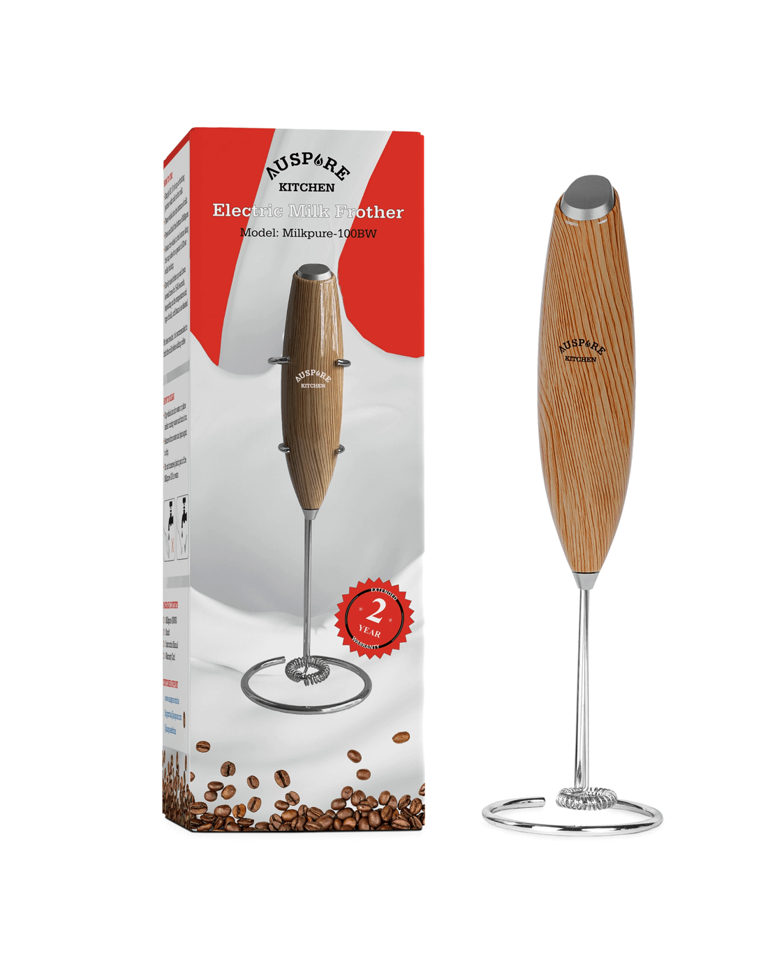 [GET CREAMY FROTH QUICKLY] Auspure brings you its portable handheld milk frother for frothed milk. If you love your morning coffee with lots of froth and foam, then you certainly want to have Auspure frothing wand at home or your coffee style cappuccino. It comes with a stand for easy storage and can be kept on the countertop.