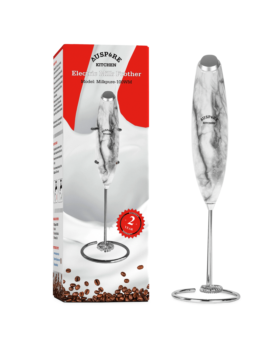 Auspure Milk Frother Handheld Electric Whisk White Marble