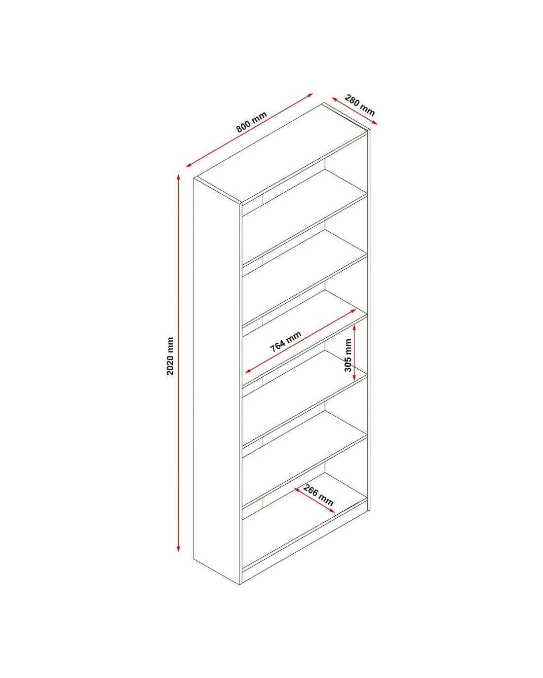 Austin 6 Shelf Bookcase Oak