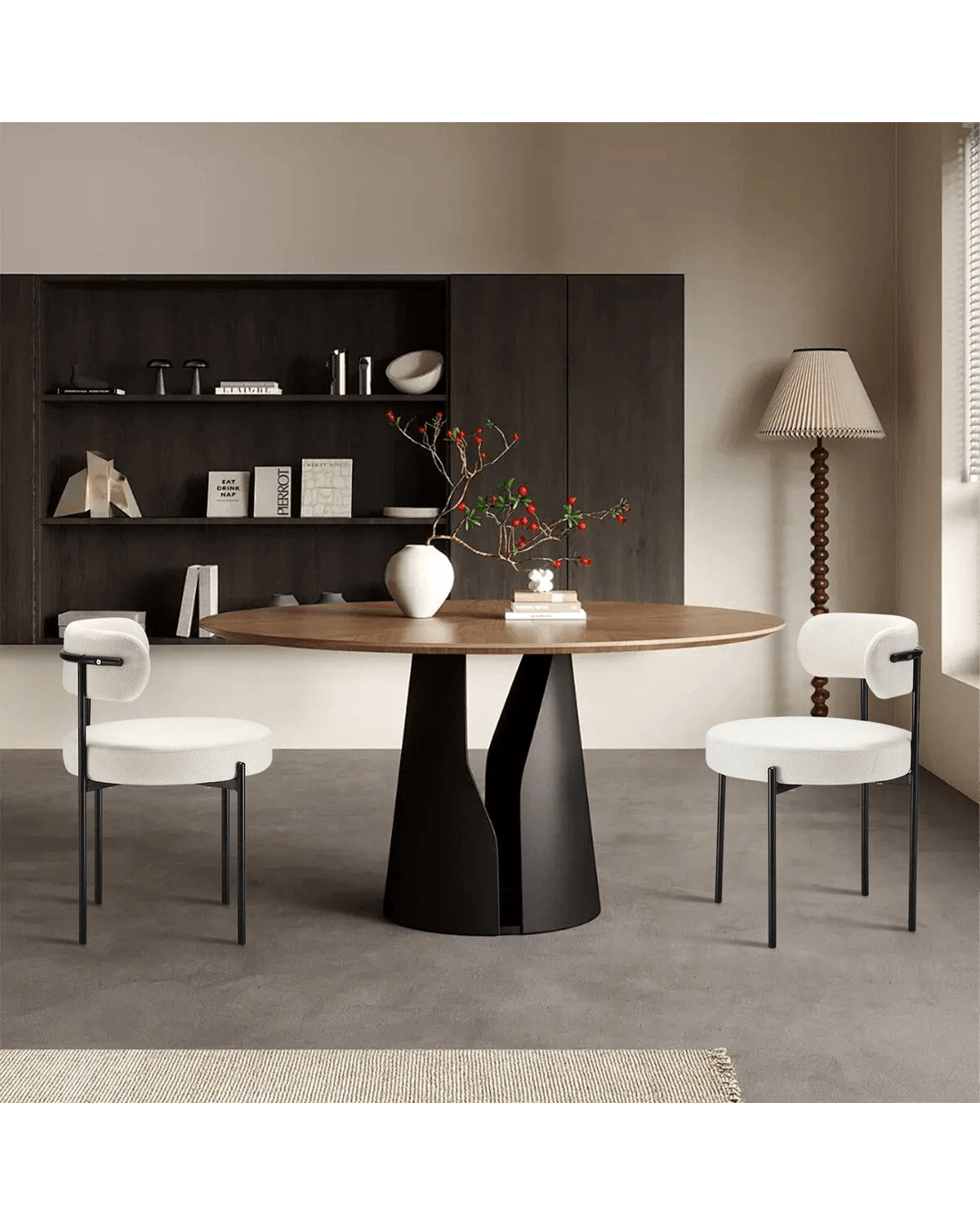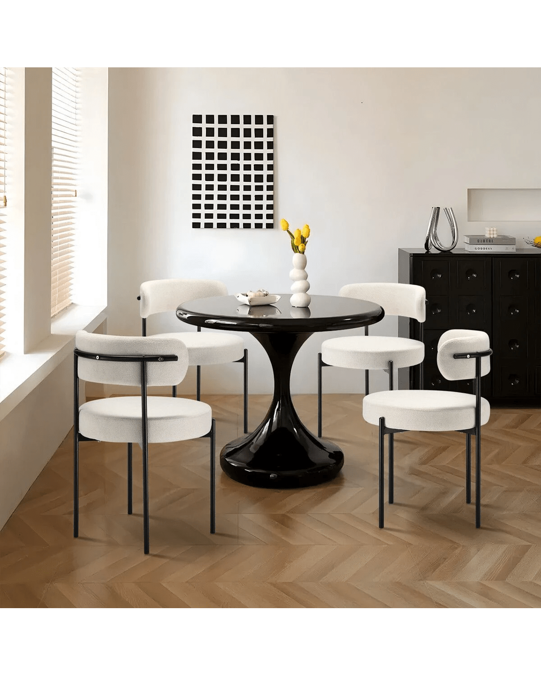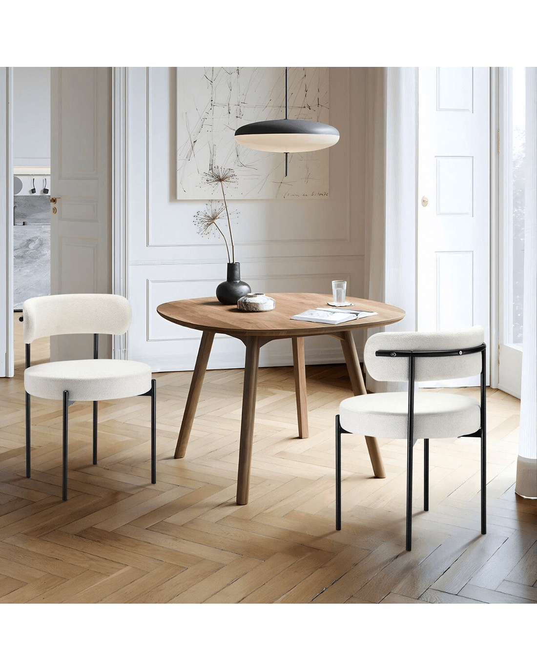 - Enhanced Comfort: Upgraded with 9cm thick, high-density foam padding, and breathable tufted boucle Sherpa fabric, these modern dining chairs offer year-round comfort and resilience, ensuring warmth in winter and coolness in summer.