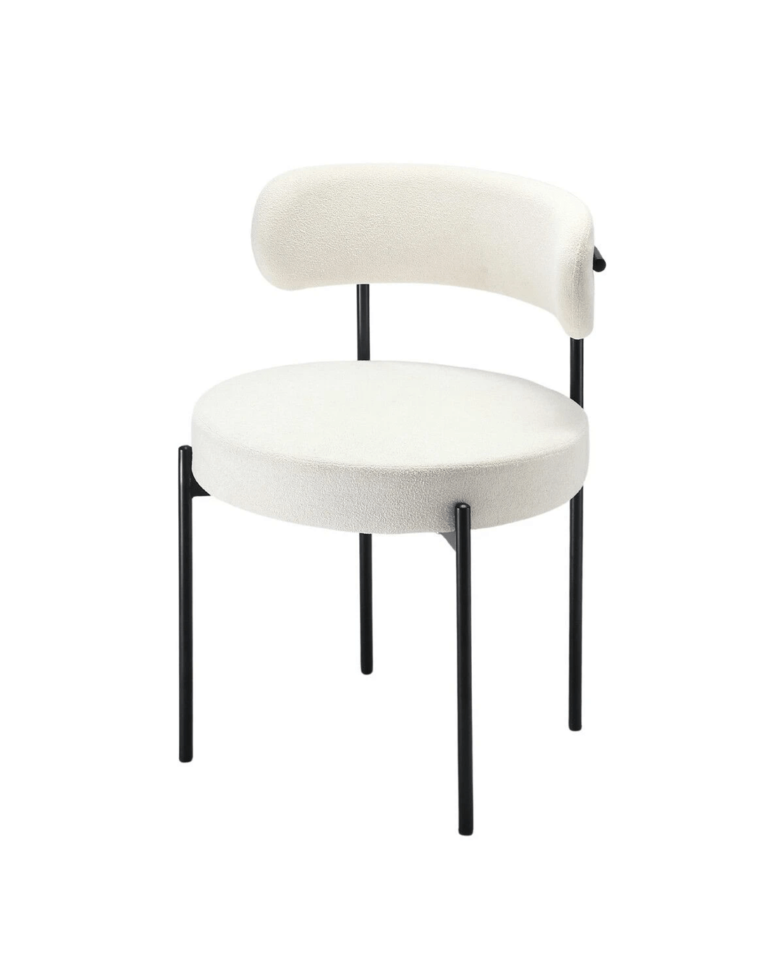 Discover our 2-piece Boucle Dining Chair Set, where comfort meets style. Crafted with 9cm thick, high-density foam and tufted boucle Sherpa fabric, the dining chairs offer year-round comfort, ensuring warmth in winter and coolness in summer. Plus, the ergonomic curved backrest features generous foam padding and a breathable, semi-wrapped design for optimal support and relief from back fatigue. Featuring matte black metal legs, these mid-century inspired chairs bring a fresh and elegant touch to any space. The sturdy yet lightweight construction perfectly complements your kitchen, dining room, or living room. Assembling these kitchen chairs is quick and easy with the included tools and detailed instructions.