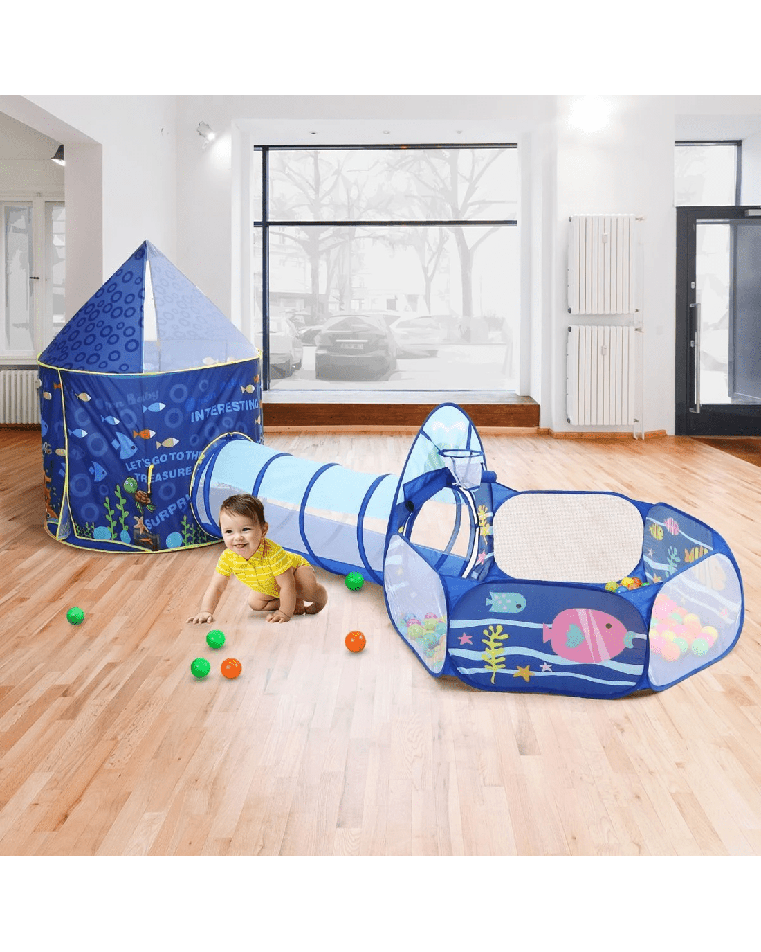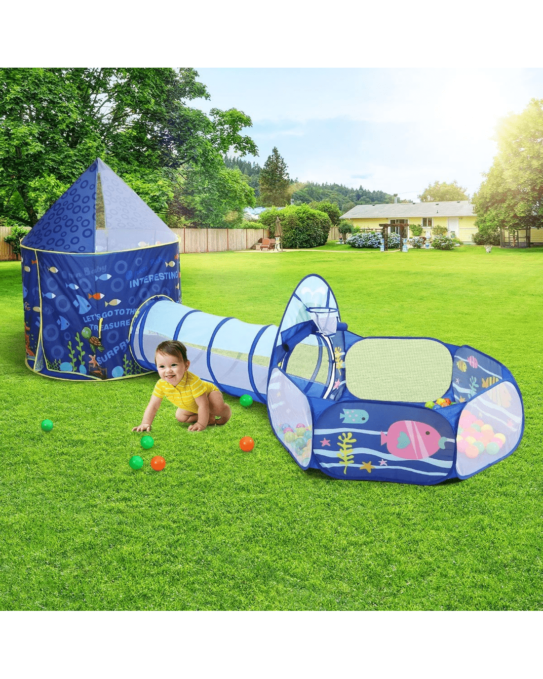 AUSWAY 3-In-1 Kids Play Tent House Baby Crawl Tunnel Ball Pit