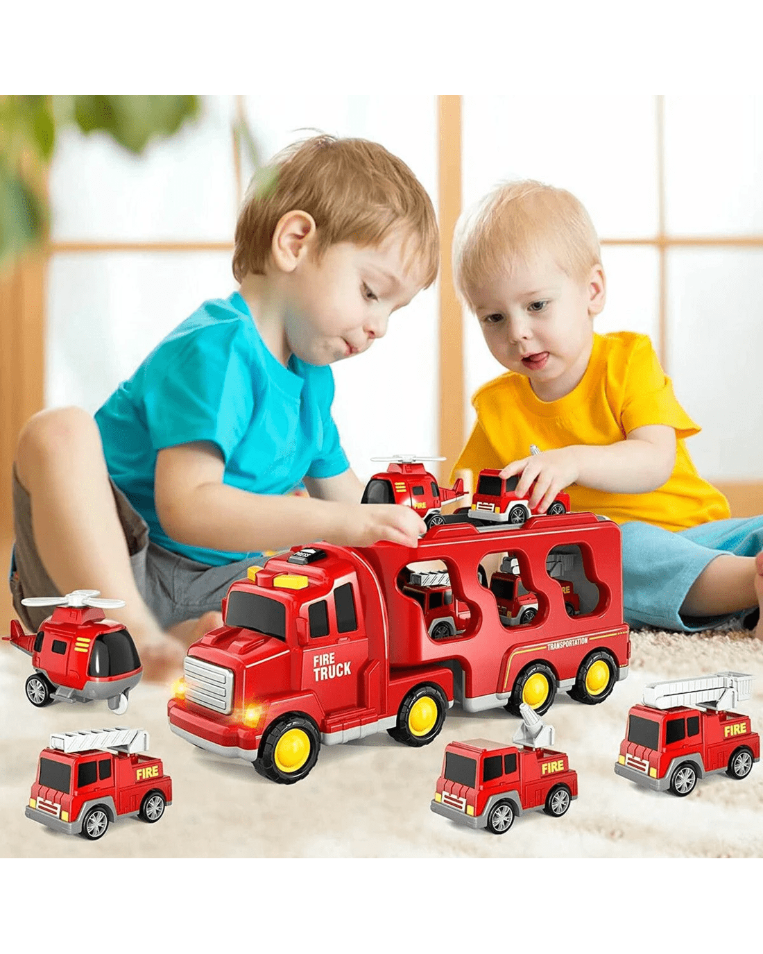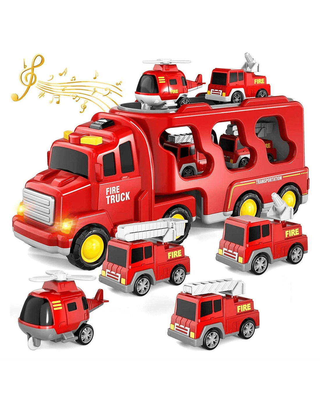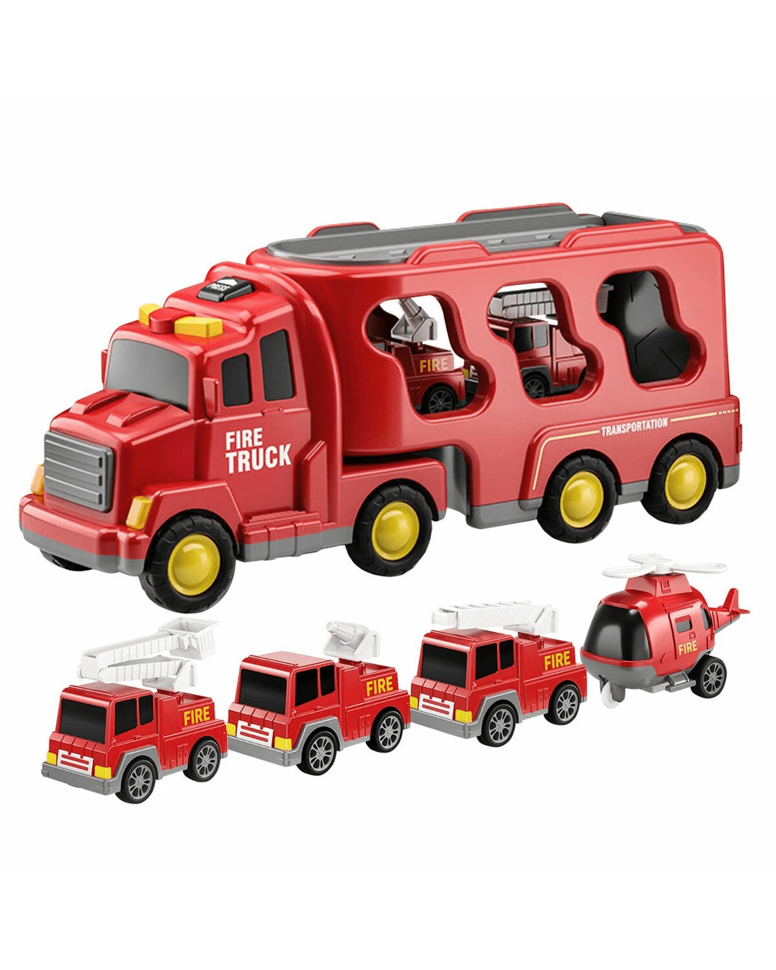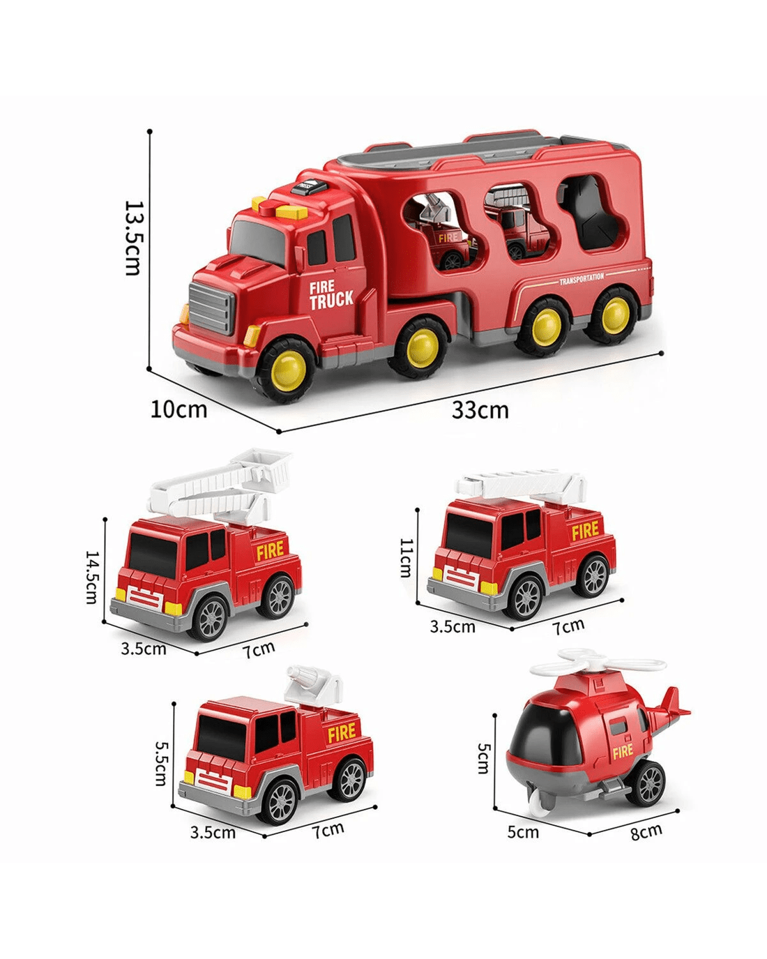 AUSWAY 5 In 1 Fire Carrier Truck Toy Car Set Toddler