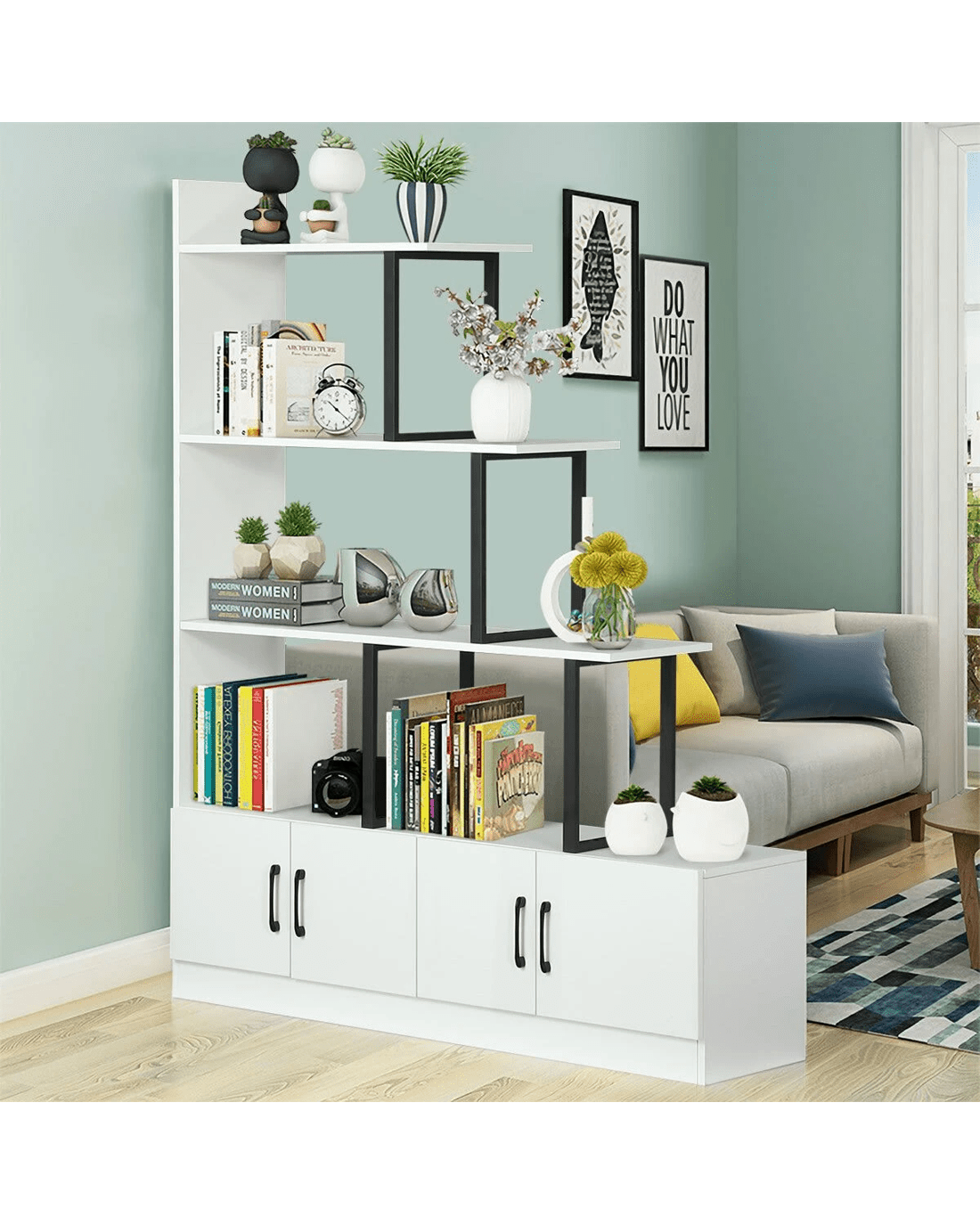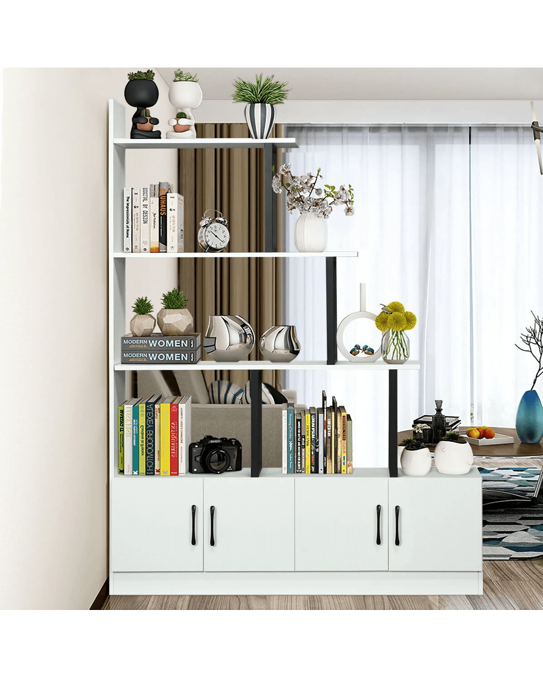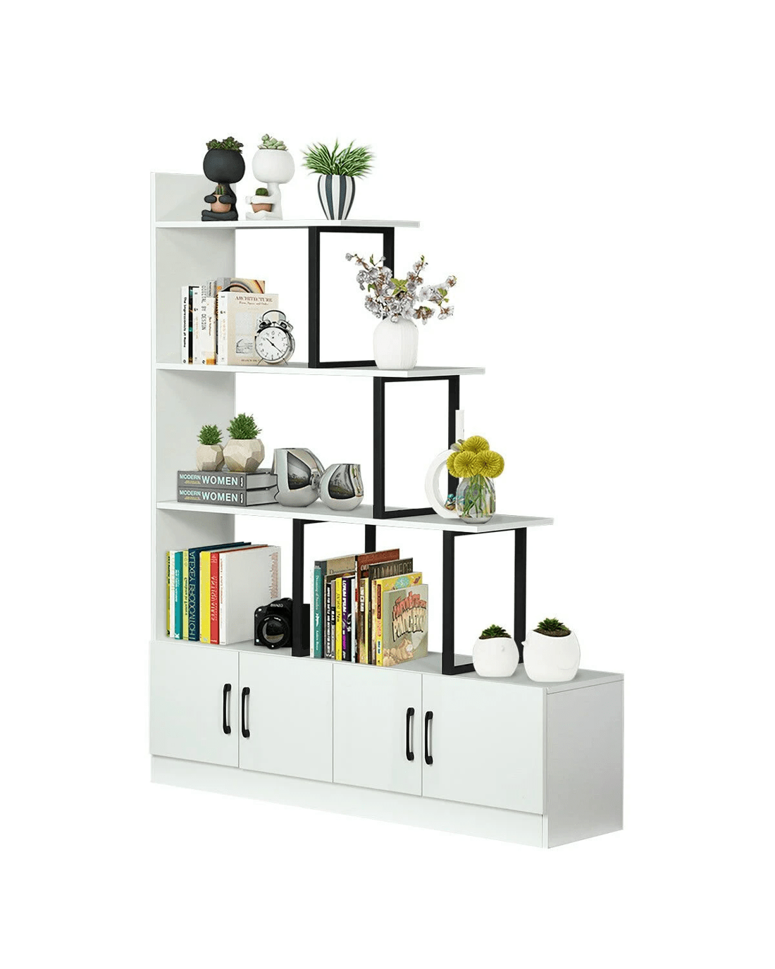 Ausway 5 Level Ladder Bookshelves Storage Cabinet Shelf Display Unit with Doors