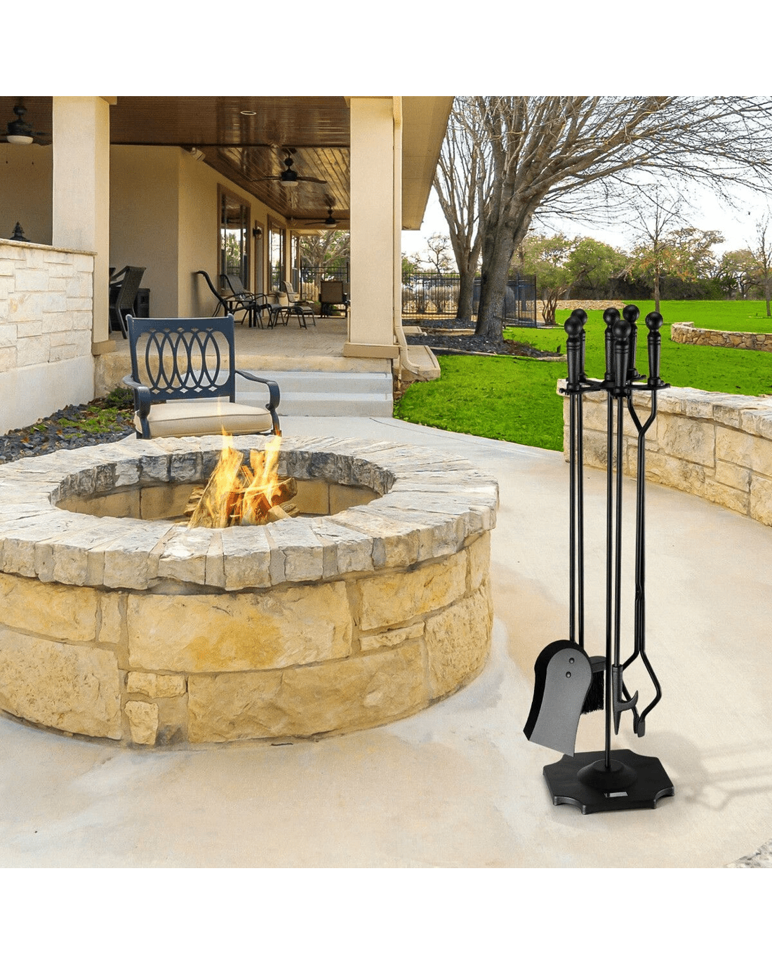 Ausway 5PCS Fireplace Tool Set Firepit Accessories