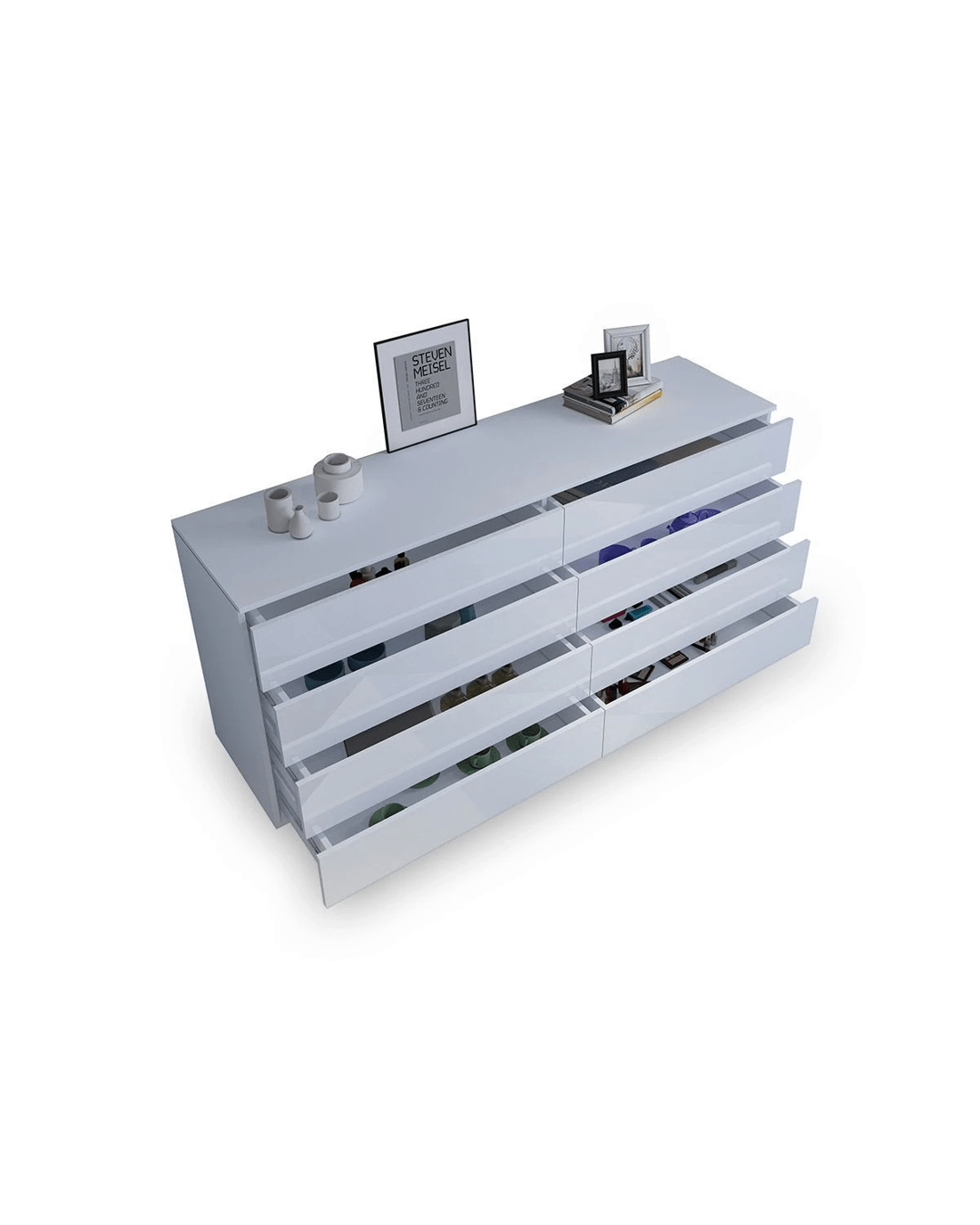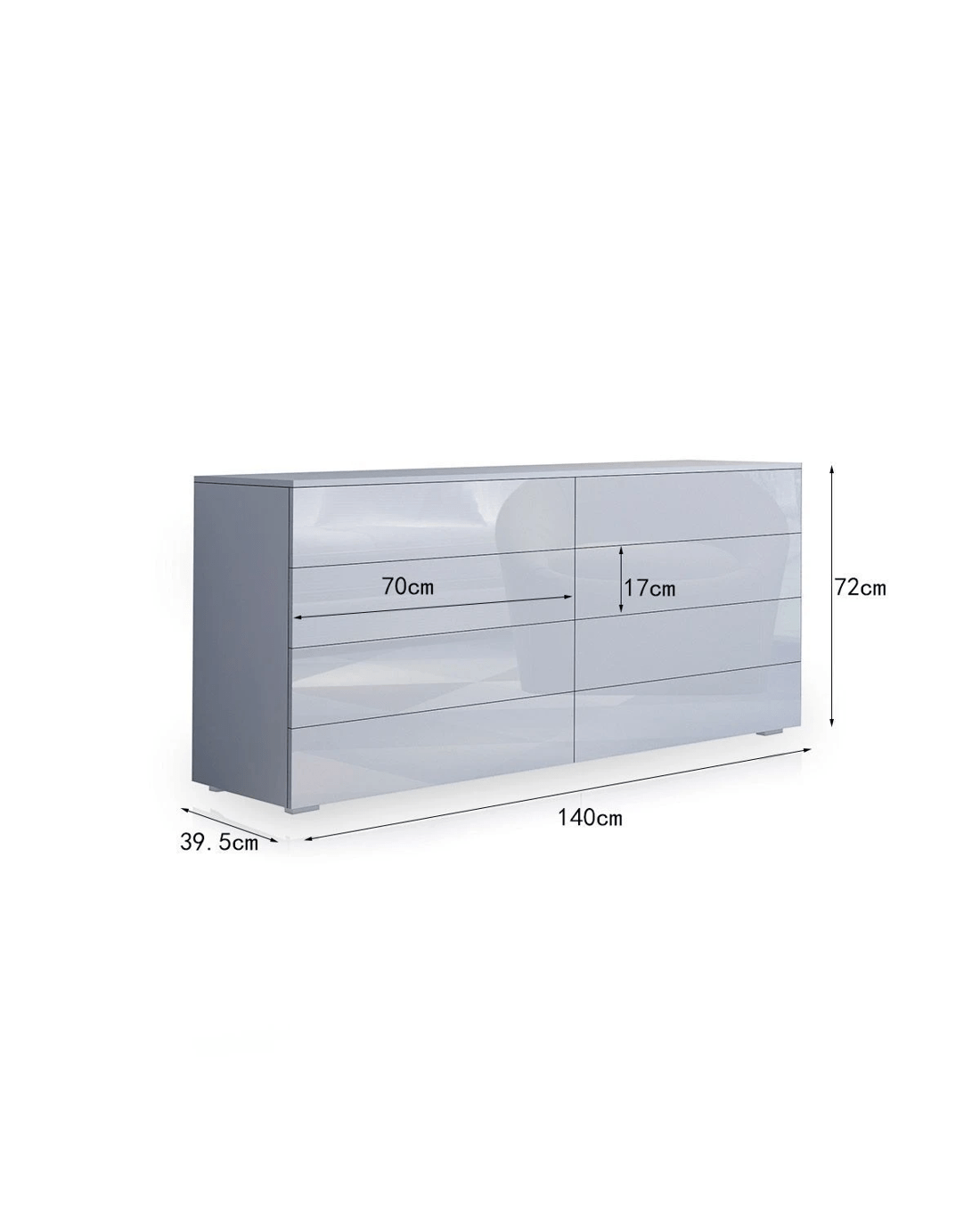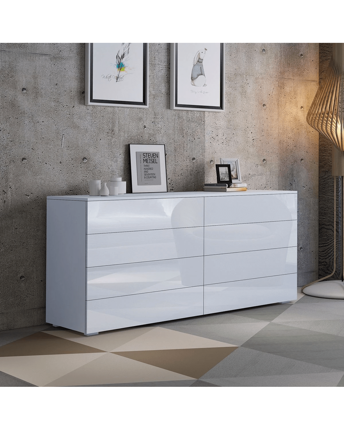 Ausway 8 Drawer Cabinet Chest of Drawers Storage Furniture High Gloss Front White