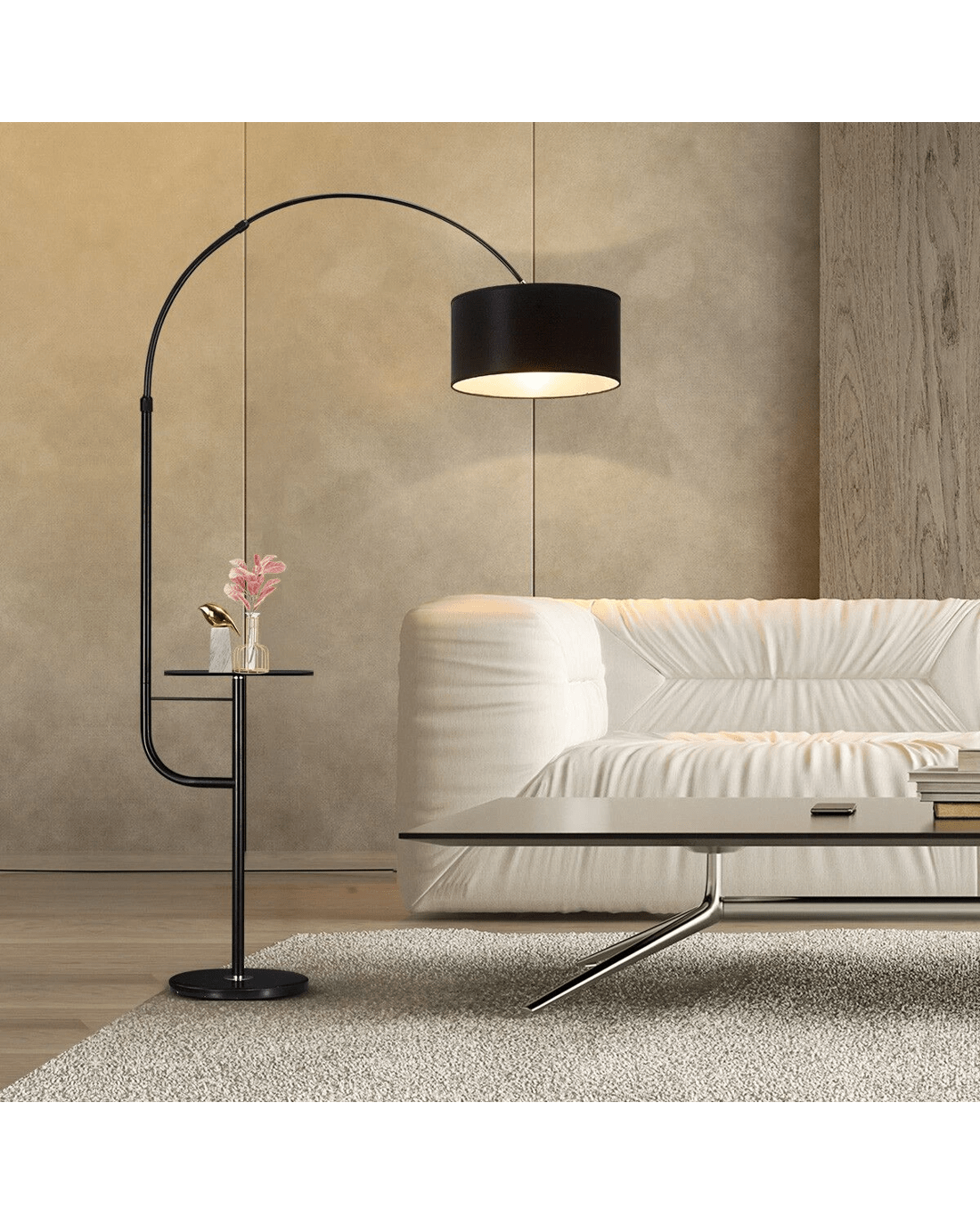 This Modern LED Floor Lamp Arc Stand Adjustable Corner Reading Light looks great in your living room next to your couch, side table or chairs. Boasting a sleek and minimalistic design, this floor lamp is composed of a metal frame, a fabric shade and a marble base that provide superior stability and prevent it from toppling over, safe and ideal for families with children and pets. The best feature is a flexible arm that allows you to easily adjust the angle of the lighting to brighten the specific area for reading or watching TV without having light shining directly in your face. The standing lamp also provides an extra shelf space to hold a cup of coffee while relaxing or a small potted plant for decoration.