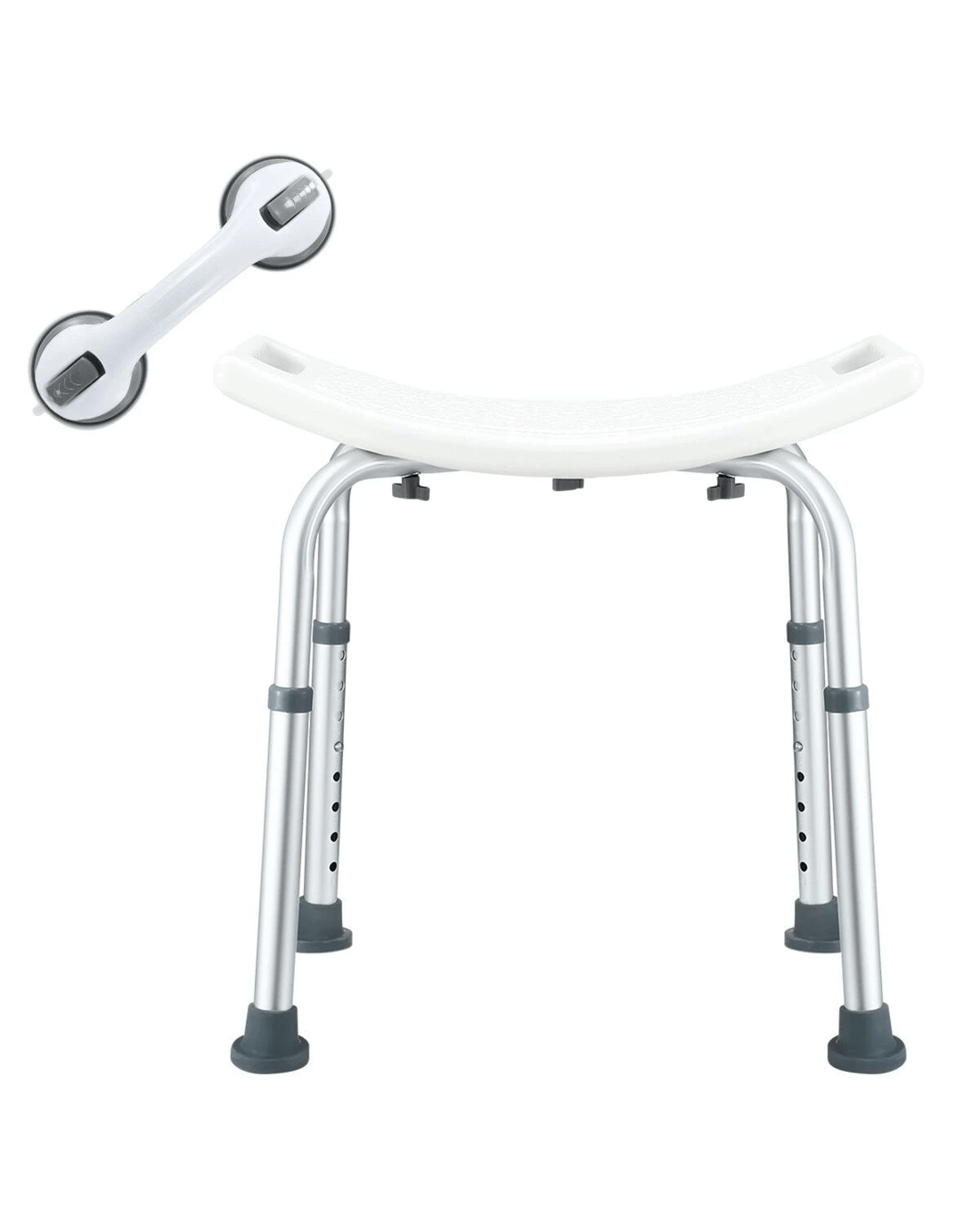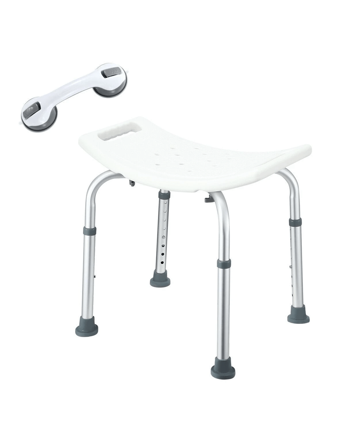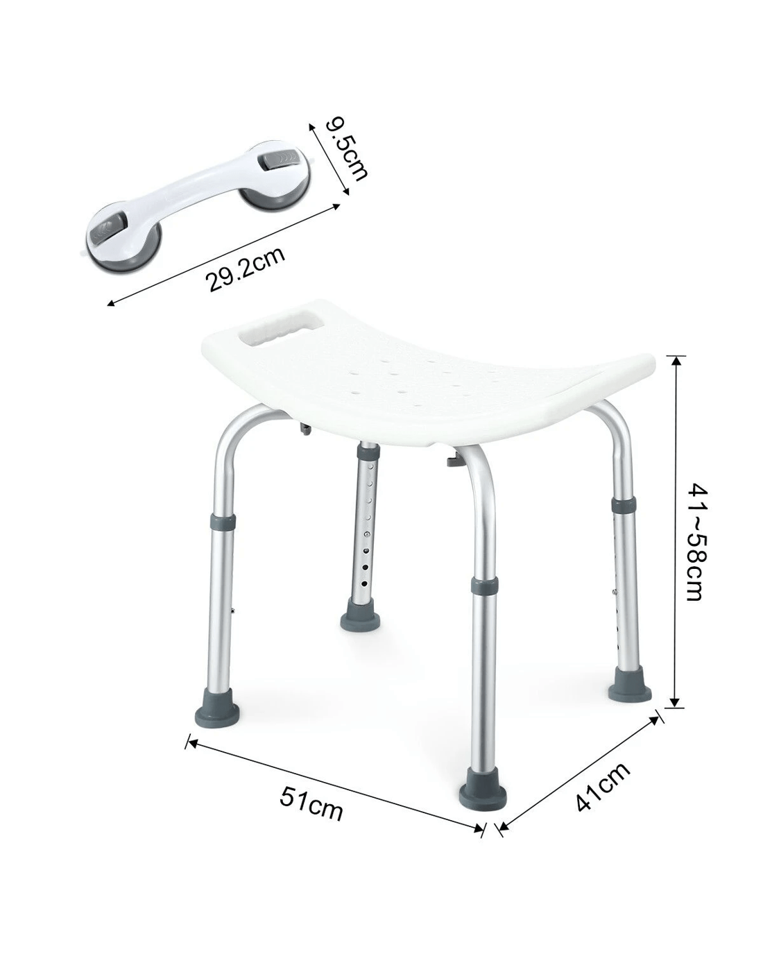 For seniors or people with limited mobility, taking a shower is no longer exhausting but a pleasure with this adjustable shower chair. Its legs are adjustable from 41 to 58 cm for extra comfort and convenience. The seat is contoured and features drainage holes to reduce water accumulation and slippage and has a built-in handle on each side for maximum security. The bath seat is strong and durable, made of a rust-resistant aluminium structure with a high-density polyethylene seat and nonslip rubber feet. It's lightweight in design, but can support individuals weighing up to 150 kg. For enhanced safety while bathing, an assist grab bar is provided. Buy the best shower chair home now for a comfortable bath.