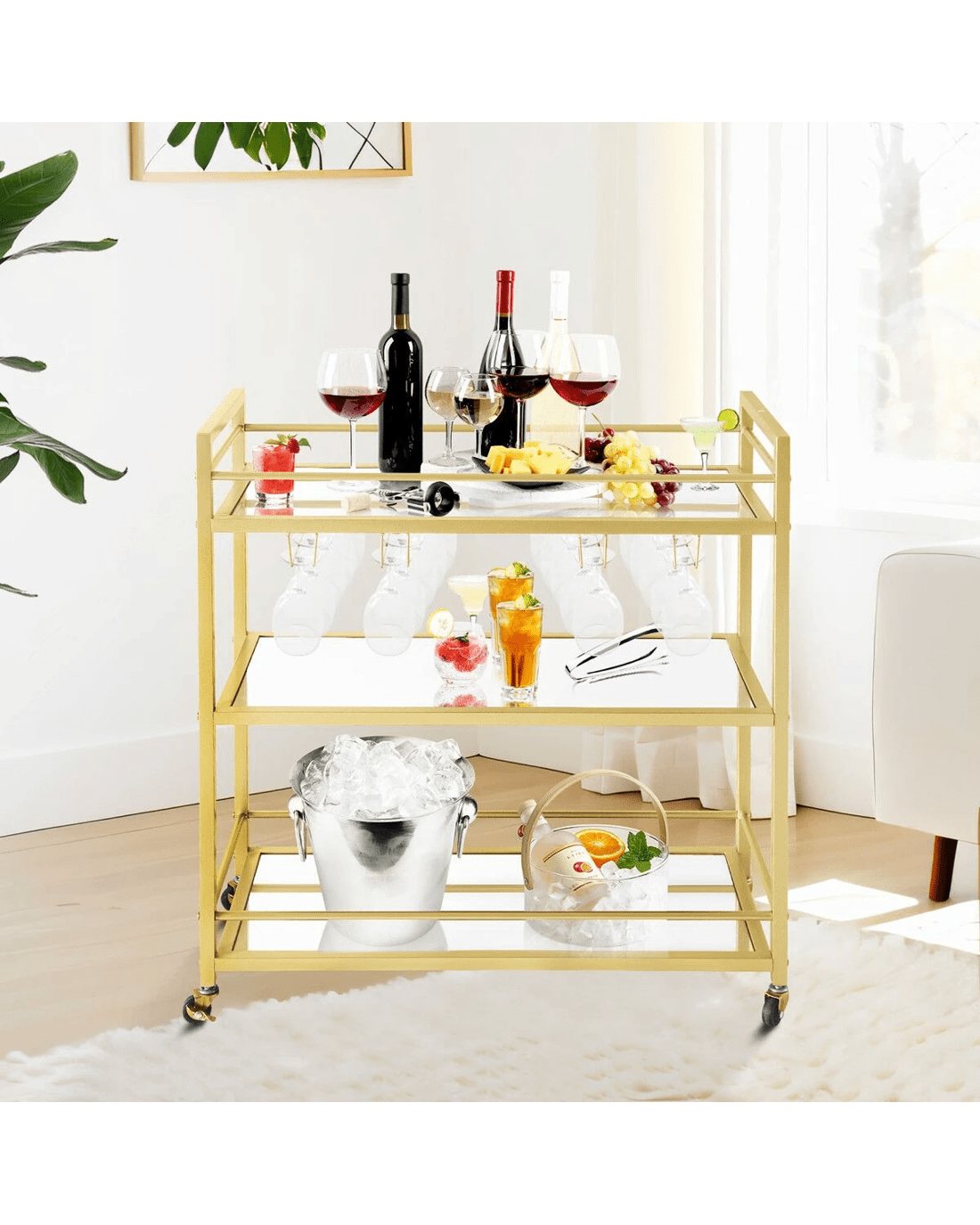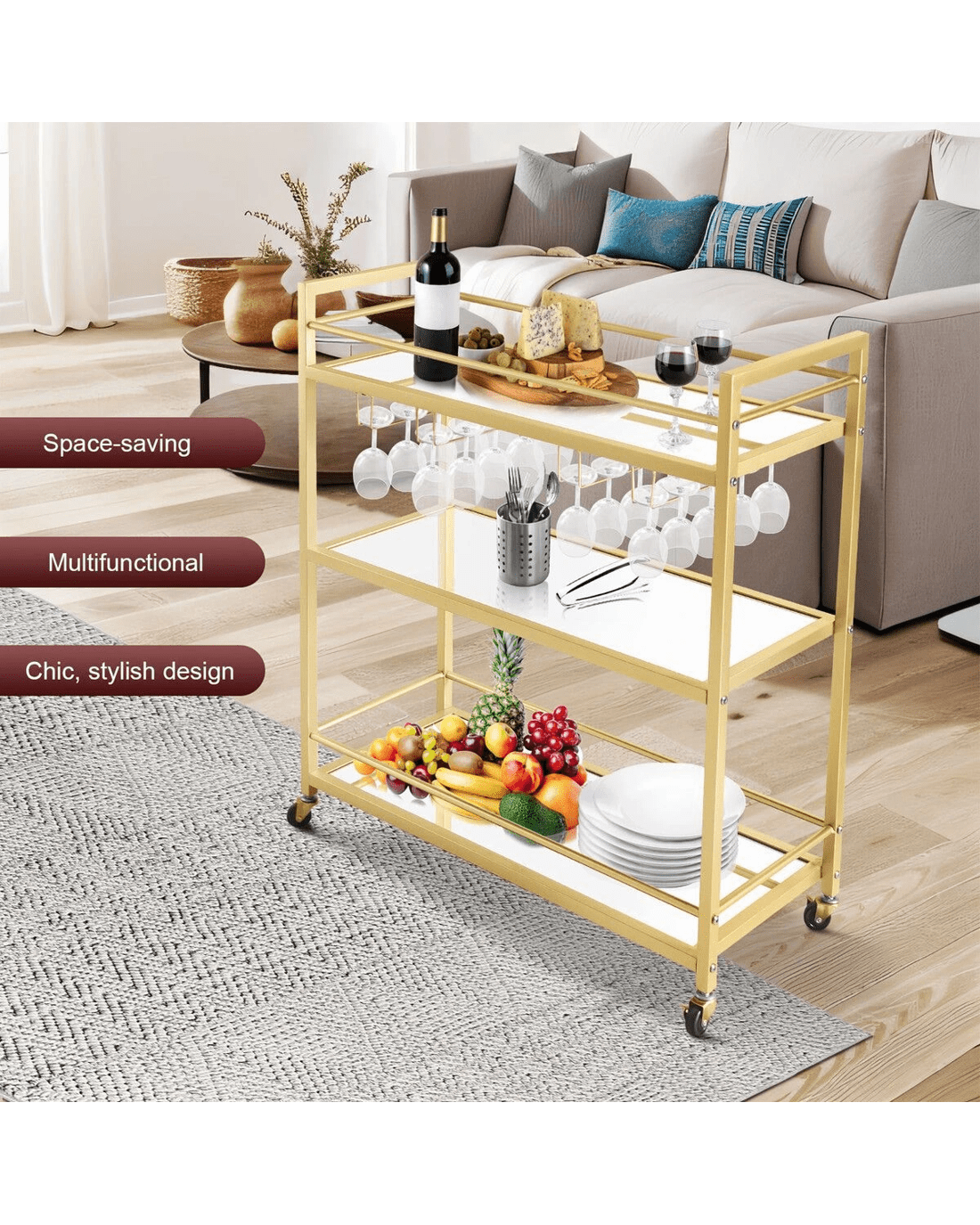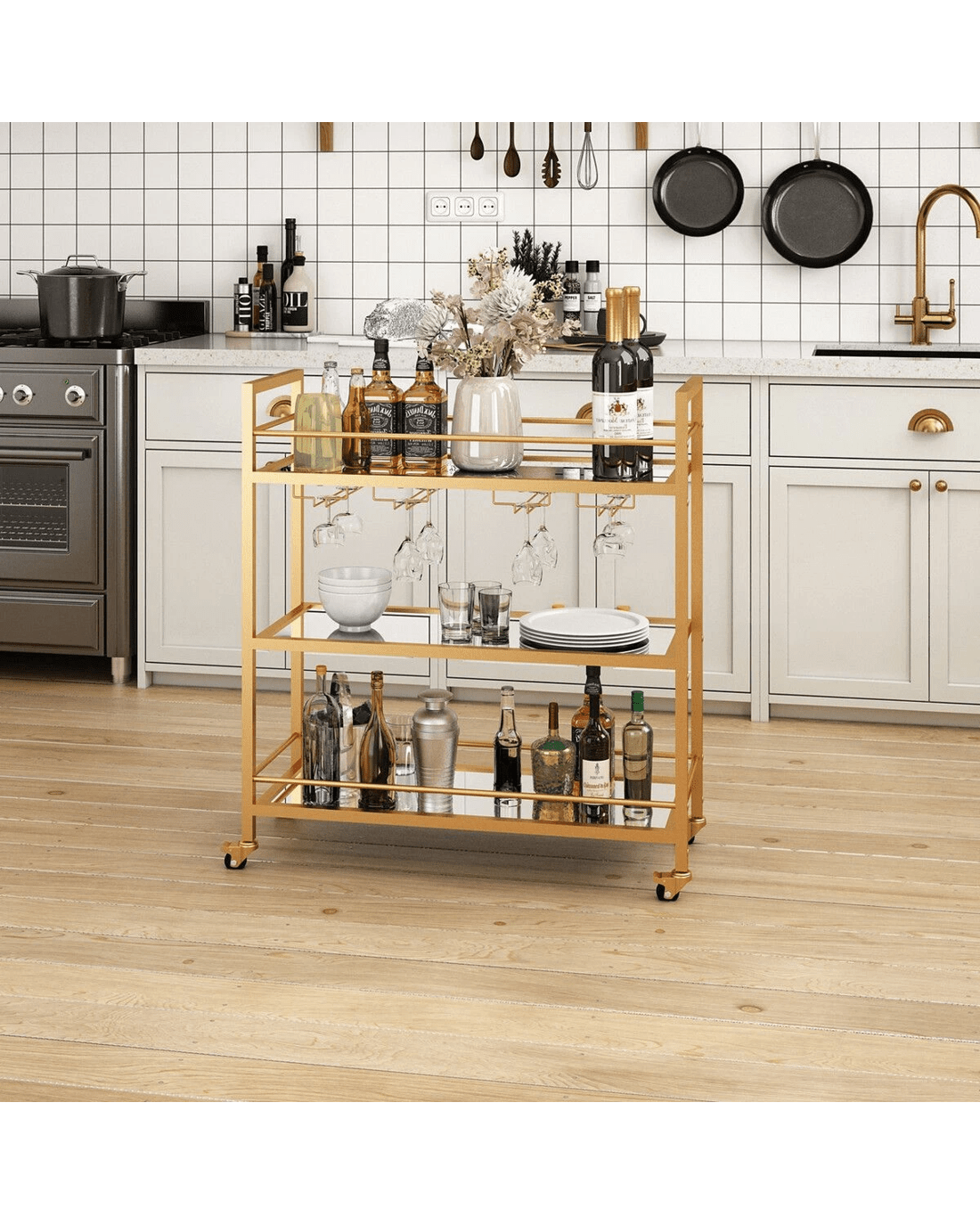 - Elegant & Versatile Design: With its sleek gold finish and modern design, this cart complements most interior styles and works perfectly as a wine rack, kitchen organiser, or dining cart.