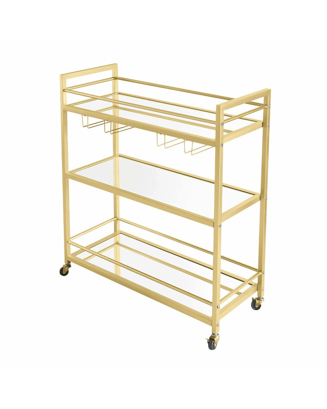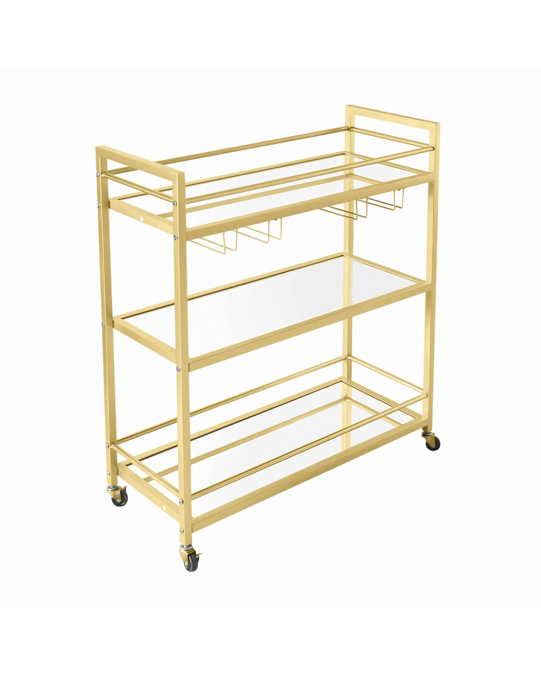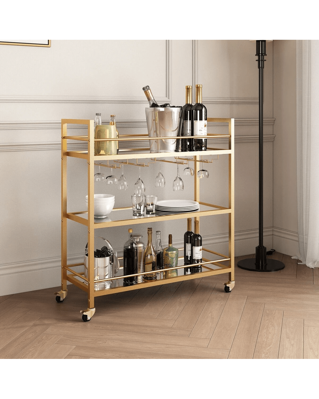 This cart has mirror-glass shelves and a gleaming golden metal frame, providing a chic, solid, and ample-space trolley for you. The middle shelf features two sets of stemware racks that can hold up to 12 glasses, while sturdy shelves and durable frames ensure long-term use, with each shelf capable of holding up to 30kg of supplies. What's more, the wheels at the bottom allow you to move it anywhere and at any time. Besides, it complements most interior decoration styles and can be used in the kitchen, living room, or apartment as you like. Even better, the cart comes with easy-to-follow instructions and tools, and assembly takes a mere 20 minutes.