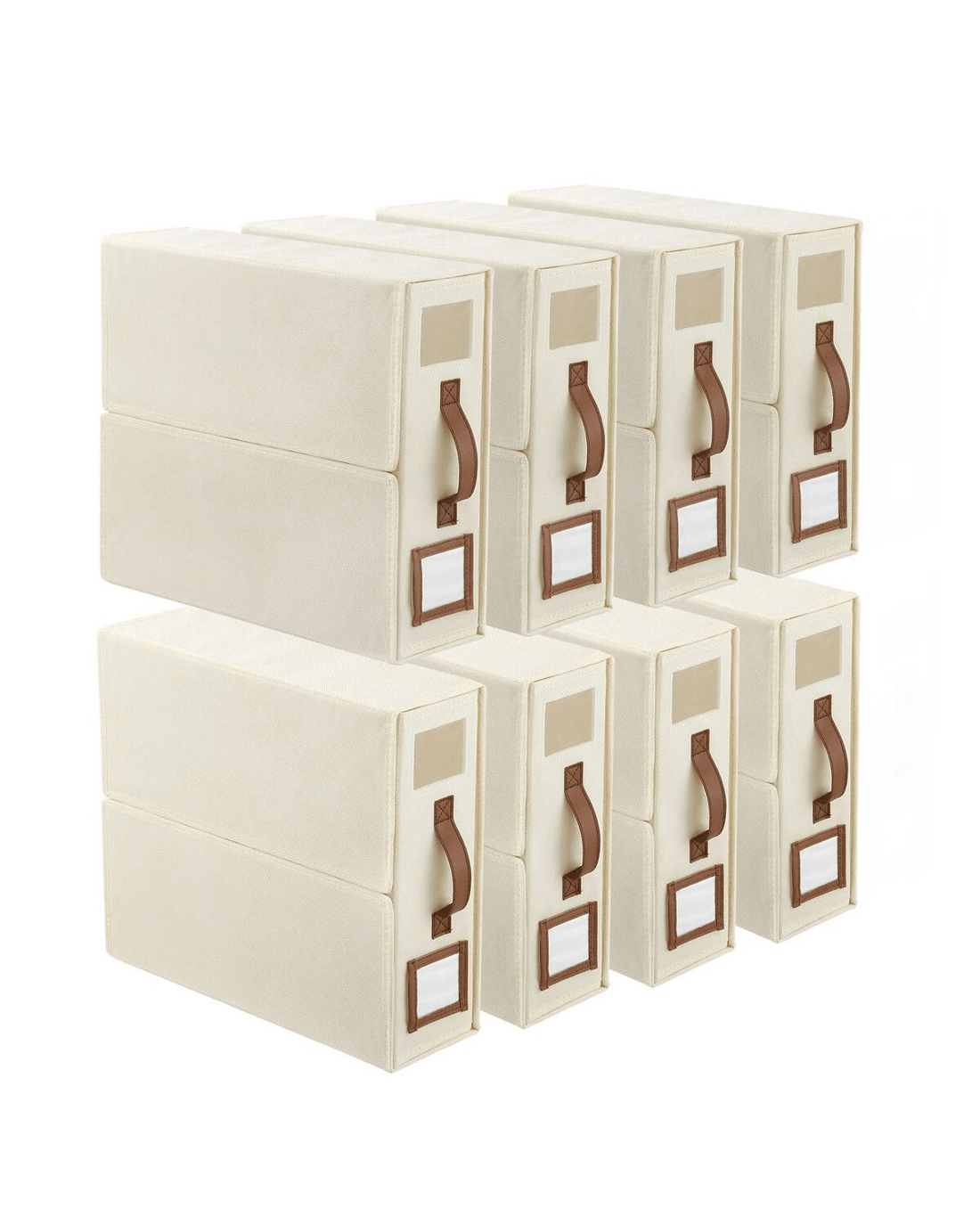 Upgrade your closet with this 8-piece Bed Sheet Organiser Set, designed to bring better storage, comfort, and style to your home. Perfect for sheets, pillowcases, duvet covers, sofa covers, and blankets, each organiser keeps full sheet sets neatly stored together, eliminating clutter and preventing lost pieces. Finely crafted using a sturdy frame and durable fabric, these storage bins are dust-proof, moisture-resistant, and pet hair-proof, protecting your bedding from wrinkles and ensuring long-lasting freshness. Besides, the premium leather handle, reinforced with multiple stitching processes, is stylish and comfortable to grip, making it easy to carry and move around for everyday use. For added convenience, the clear front window lets you identify contents at a glance, while the replaceable label slot allows personalised notes to keep everything organised. Versatile and modern, this folding set fits seamlessly into drawers, wardrobes, closets, shelves, or storage cabinets, bringing a clean, organised, and elegant touch to your living space.