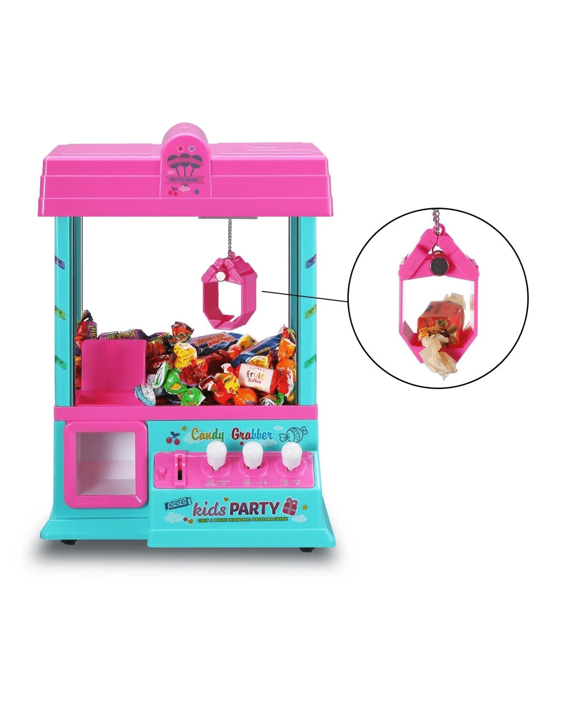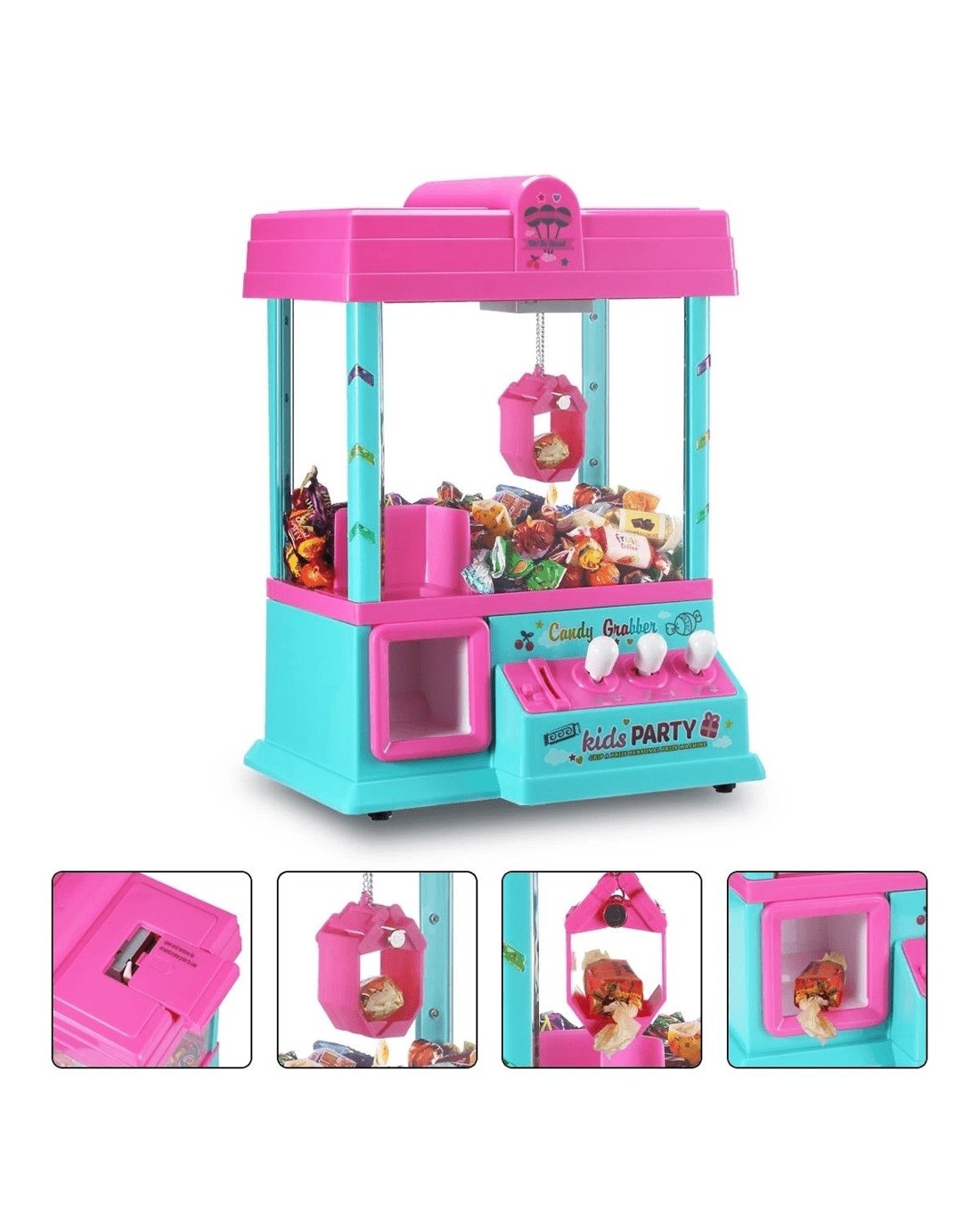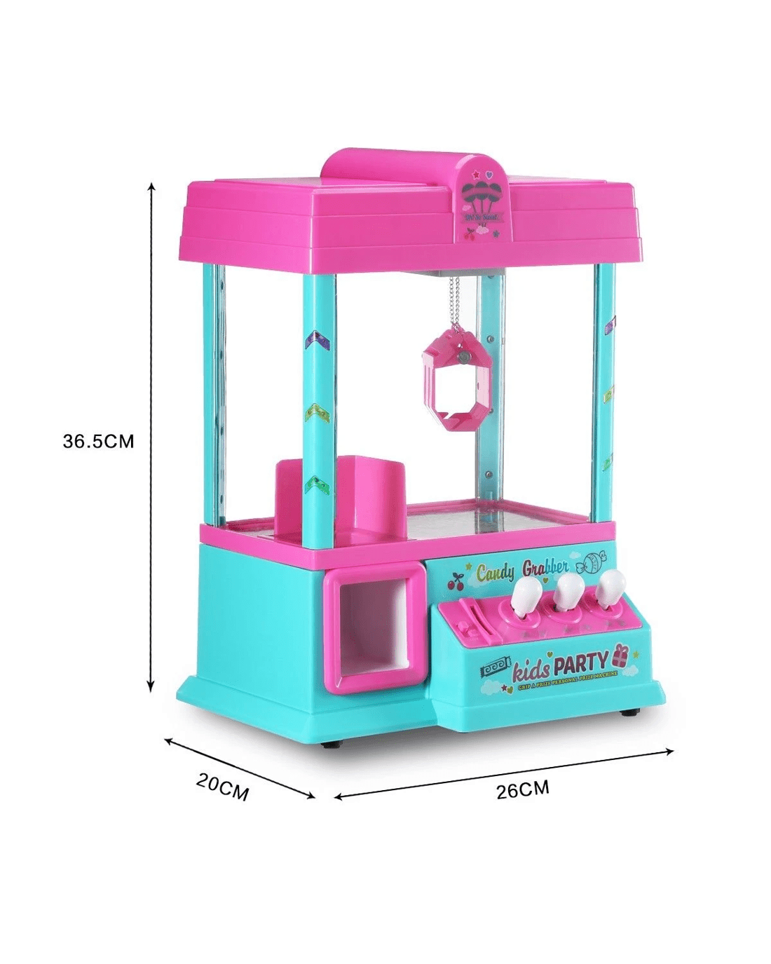 See what you can grab with this Mini Toy Claw Machine Arcade Game with LED Lights & Music 24 Coins. Fill the machine with candy, gum, small toys and much more. Simply set your sights on a prize; then move the controls up, down, left and right to grab it. Drop it down the chute before the music stops, and it's yours! Music runs for 60 seconds each time. Kids will love this electronic arcade game that provides hours of at-home entertainment, especially at events like birthday parties! Measures 26 cm x 20 cm x 36.5 cm, this Mini Claw Machine has LED Flashing Lights & Musical Sounds & Animation while you use the controls to move the grabbing mechanism back and forth, up and down! A handy remote control allows kids to comfortably play at a distance. It requires (3) D batteries or USB, not included. The Claw Grabber Game encourages hand-eye coordination, imagination, observation ability as well as rhythm sensation. The sound effects create an authentic carnival atmosphere where ever you choose to play! Buy it now and enjoy your favourite arcade game fun in the Comfort of Your Home. Ideal for Carnivals, Parties, Fairs Pretend Imaginative Play. Best gift for children or adults!
