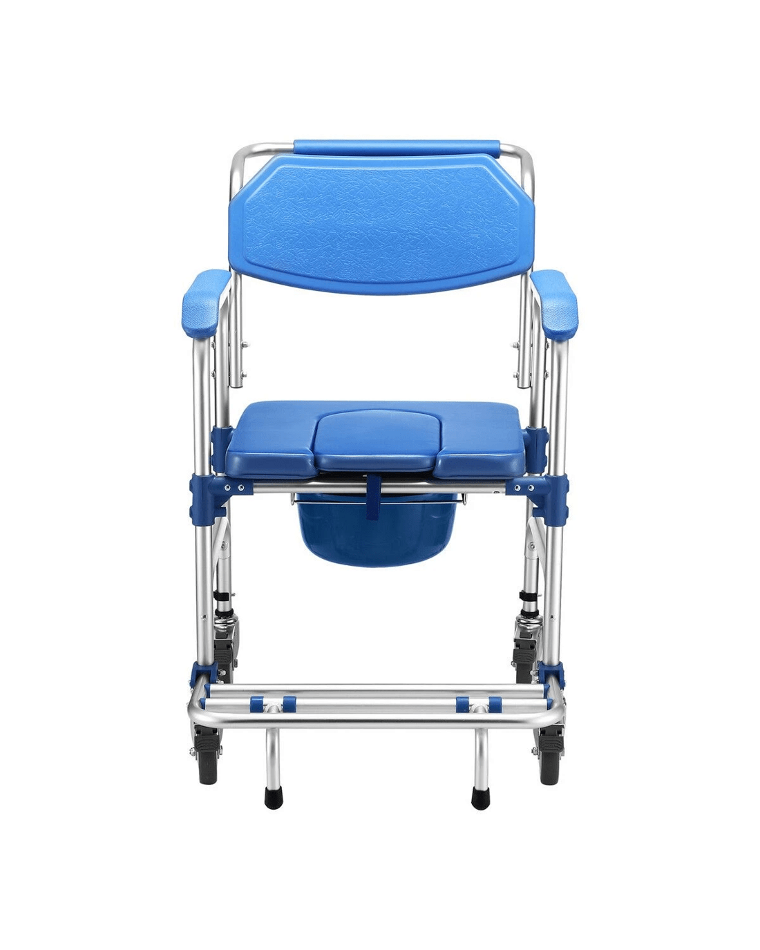Give your loved one the confidence to shower, toilet and move around with this 3-in-1 commode shower chair toilet seat wheelchair. Produced from a lightweight yet durable aluminium alloy frame, this shower chair is robust and reliable and resists rust and corrosion. The large backrest and padded seat not only alleviate pressure on your joints but also provide supreme comfort for extended periods. Plus, the anti-skid handrails and lockable wheels provide added stability and support, enabling safe transfers and reducing the risk of falls. Further, the removable bucket ensures easy waste disposal while the wheels facilitate convenient movement. Besides, this bath stool is waterproof, easy to clean and sanitise for better hygiene. Improve safety in the bathroom and increase the user’s freedom and independence with this multifunctional chair.