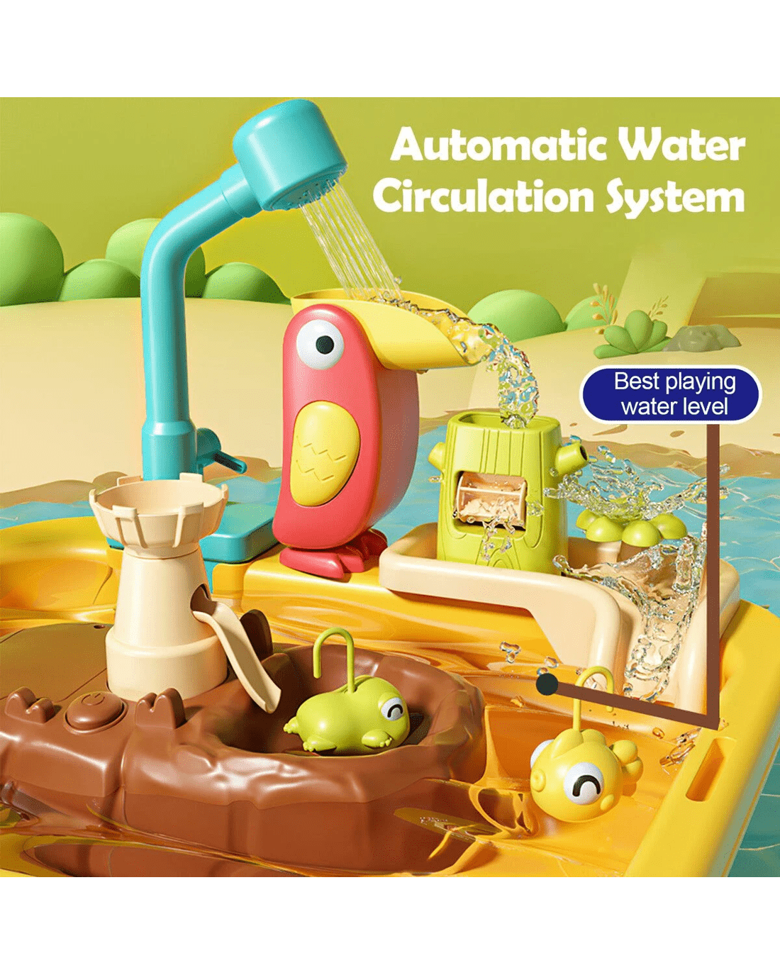 The Automatic Water Circulation System, with its lifelike faucet and automated water flow, eliminates manual pumping. Simply add water to the sink's base, turn on the faucet, and watch the water flow naturally. The captivating Fun Fishing Game includes vibrant floating toy accessories that boost hand-eye coordination. These accessories, such as fishing toys and toy ducks, can also be enjoyed in baths and pools, adding extra excitement to playtime. Our commitment to premium quality is evident in toys suitable for children aged 3 and up. Crafted from odour-free, smooth ABS material without burrs, these toys offer a safe and enjoyable play experience. Whether for role play, holidays, birthday parties, or special occasions like Thanksgiving and Christmas, our playset is the ideal companion for your child's imaginative adventures and playful moments.