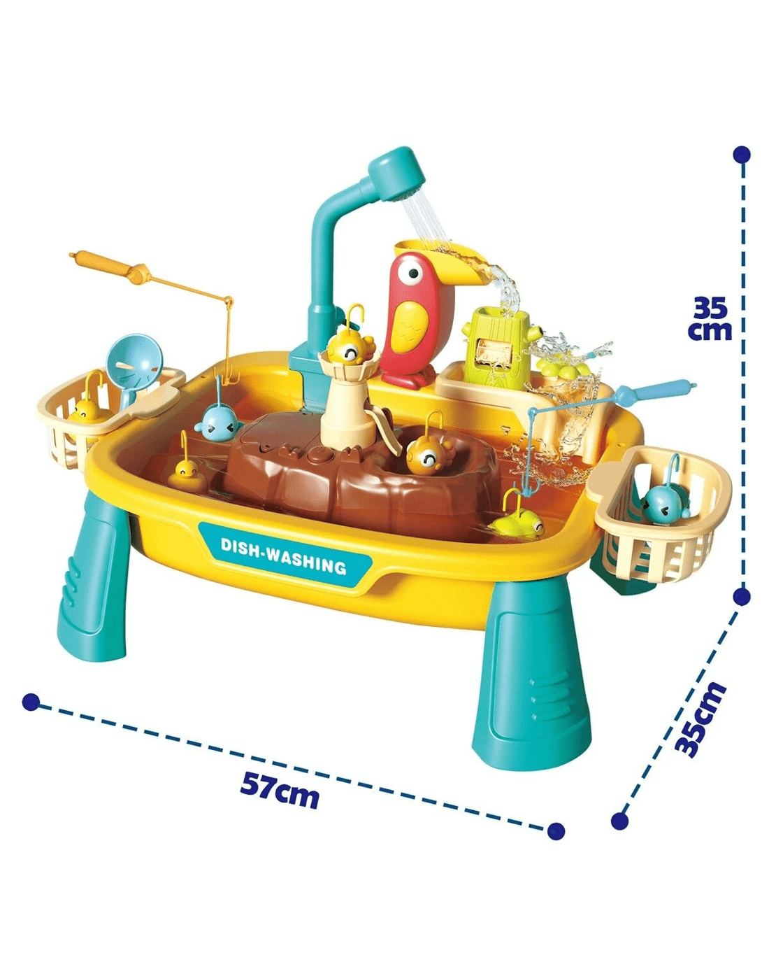 - Fun Fishing Game: This play sink toy set includes colourful floating toy accessories. Your kids can enjoy the simulated fishing experience, helping them develop their hand-eye coordination. The fishing toys and toy ducks can also be used as bath and pool toys