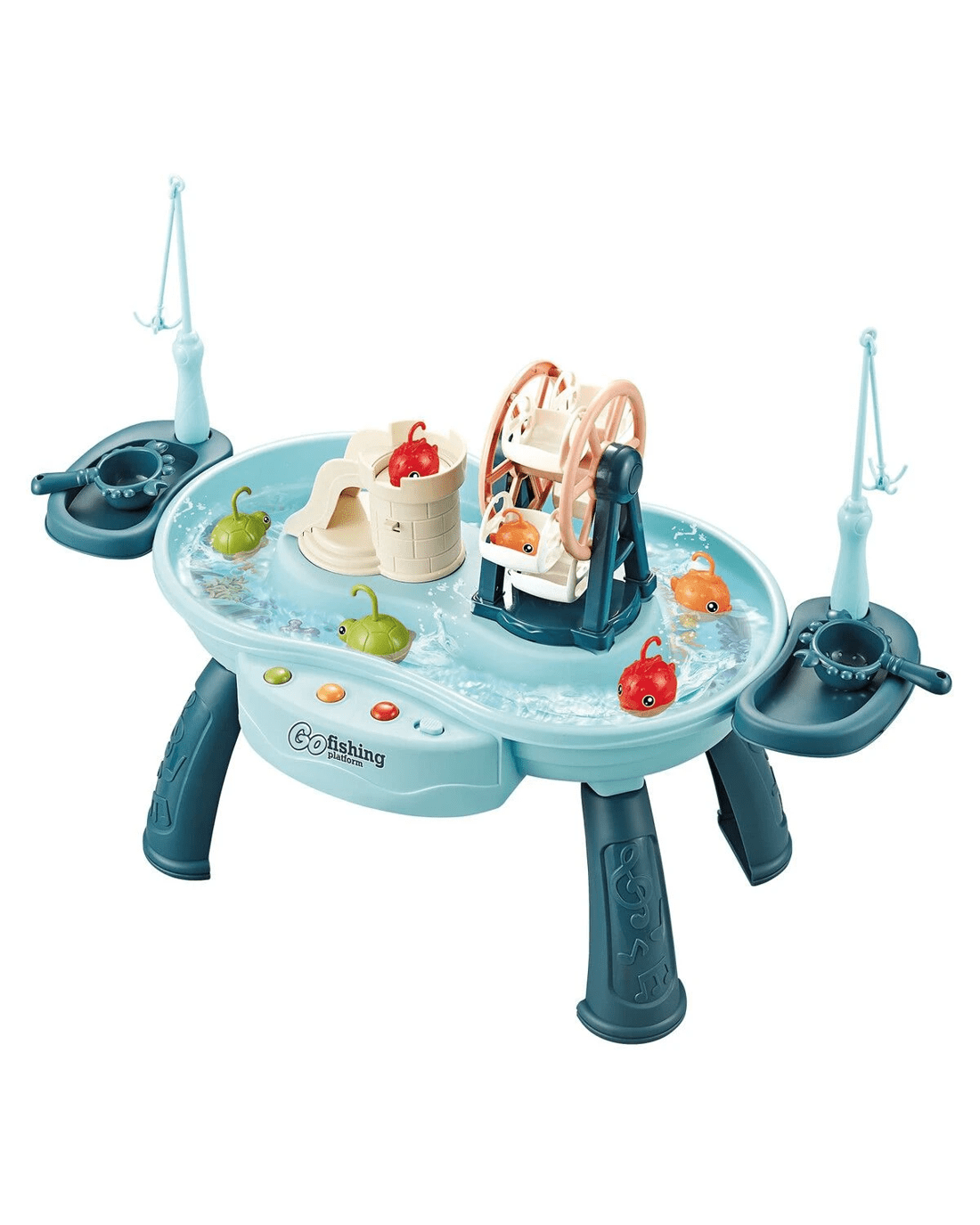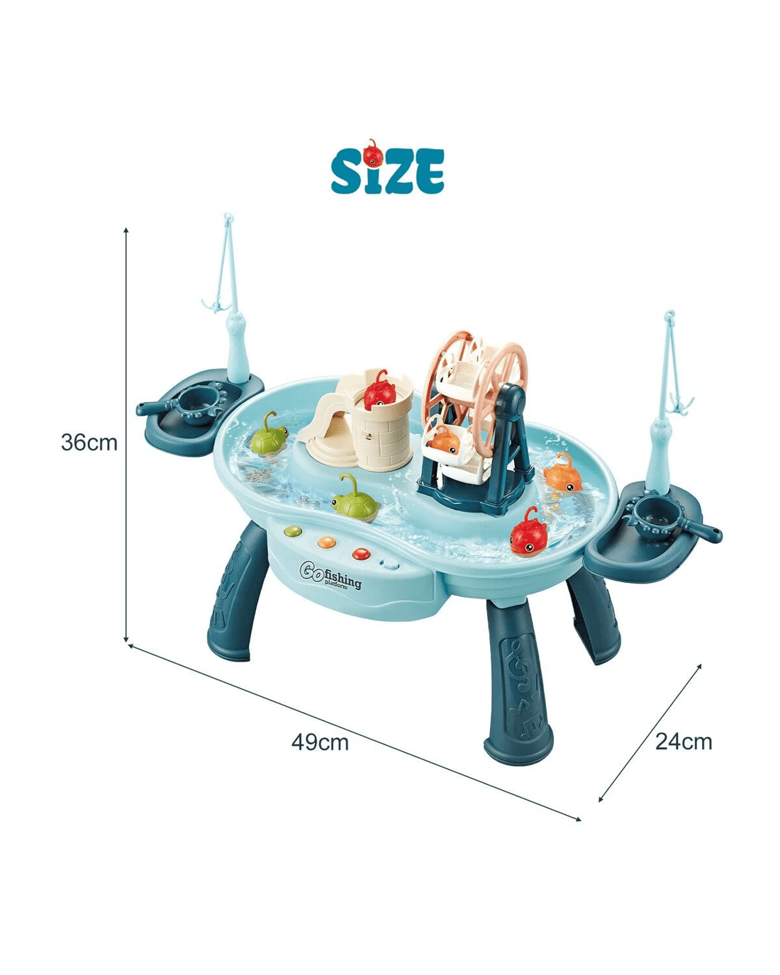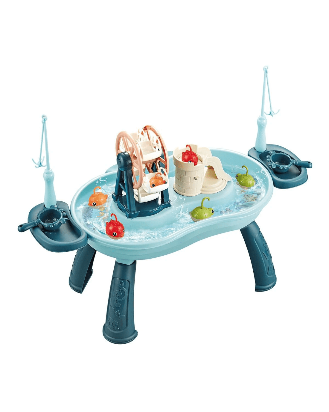 - Fun Fishing Game: This play sink toy set includes colourful floating toy accessories, a 360° rotating Ferris wheel and a fish jumping slide. Your kids can enjoy a simulated fishing experience, helping them develop hand-eye coordination.
