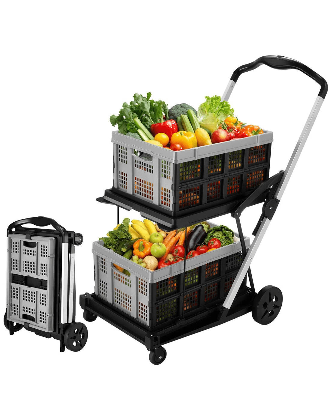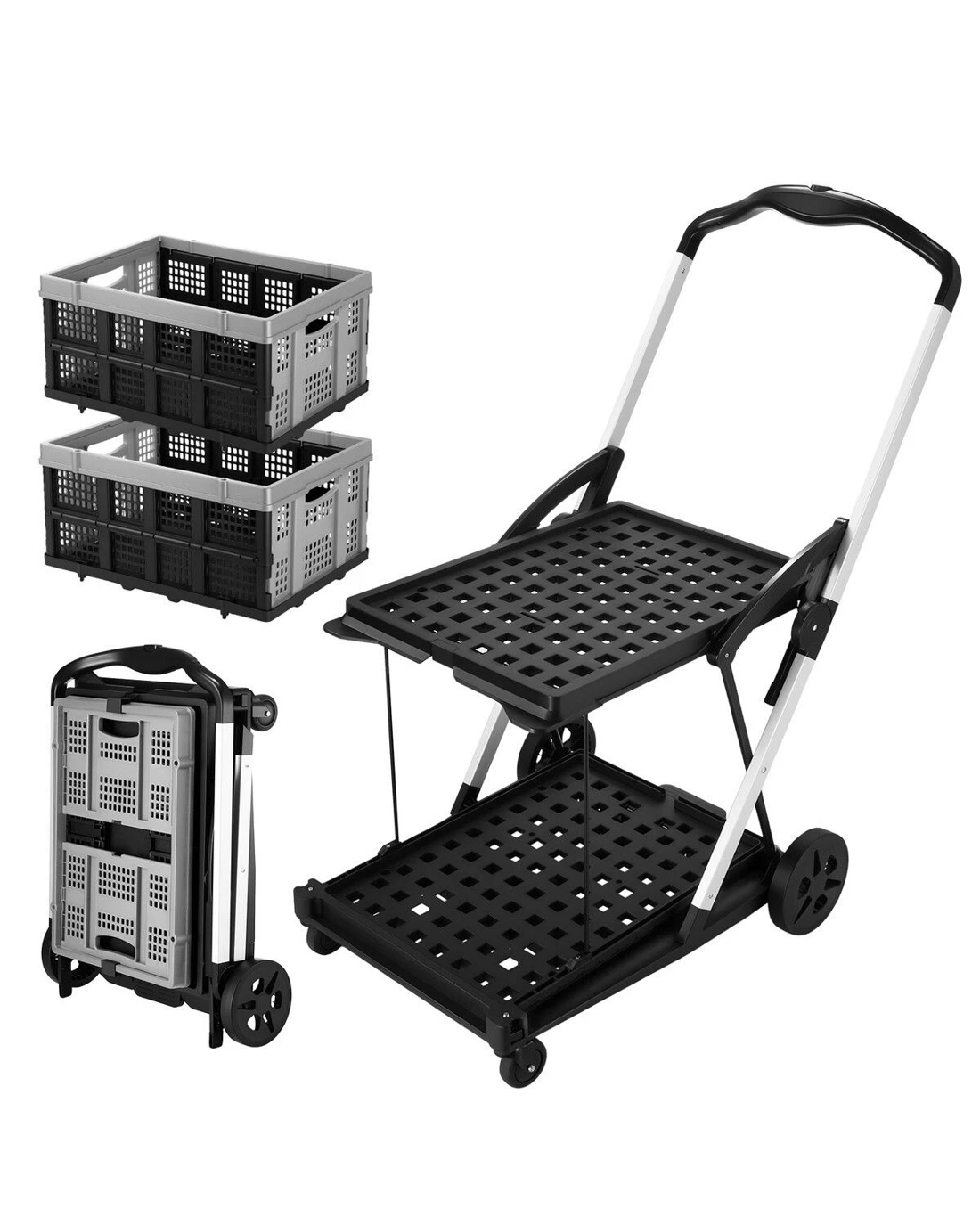 AUSWAY Folding Hand Truck Dolly Luggage Utility Cart Shopping Trolley Collapsible