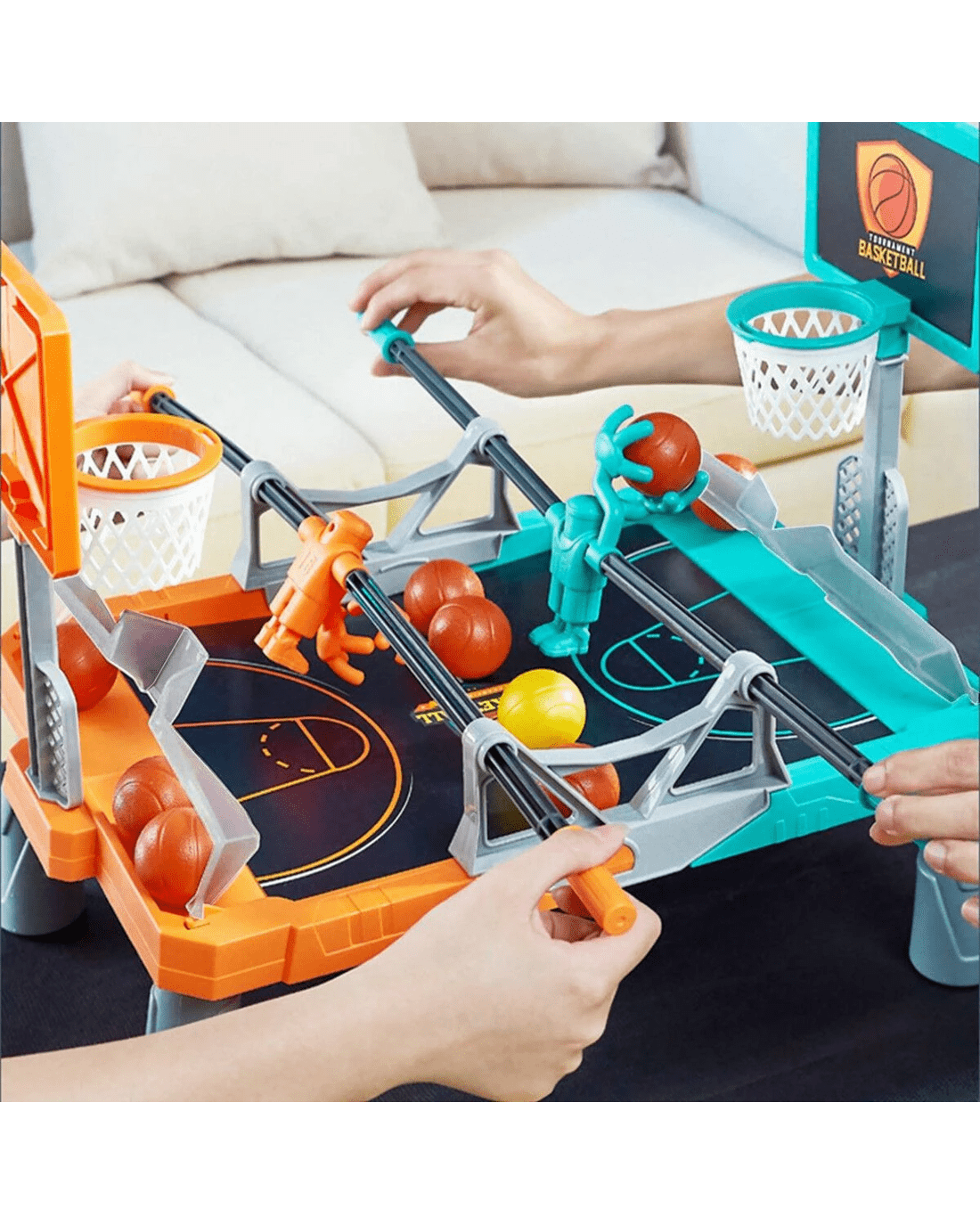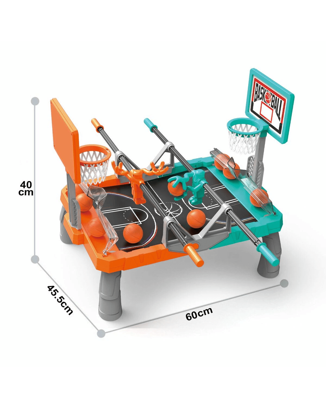 Gift your kids this foosketball board game set, where foosball meets basketball for the ultimate entertaining experience. Ideal for kids and adults alike, it promotes hand-eye coordination and strategic thinking. The table game playset turns any space into a dynamic playground, making it perfect for family parties, gaming nights, or casual get-togethers. This foosball table is made from lightweight yet durable plastic and is easy to assemble to start an engaging game anytime, anywhere. Plus, it is EN71 European Safety of Toys certified for maximum safety and enjoyment. Create lasting family memories or simply engage in an exciting activity with this basketball game table. Unleash the fun and competitive spirit in your household with this must-have kid's activity centre.