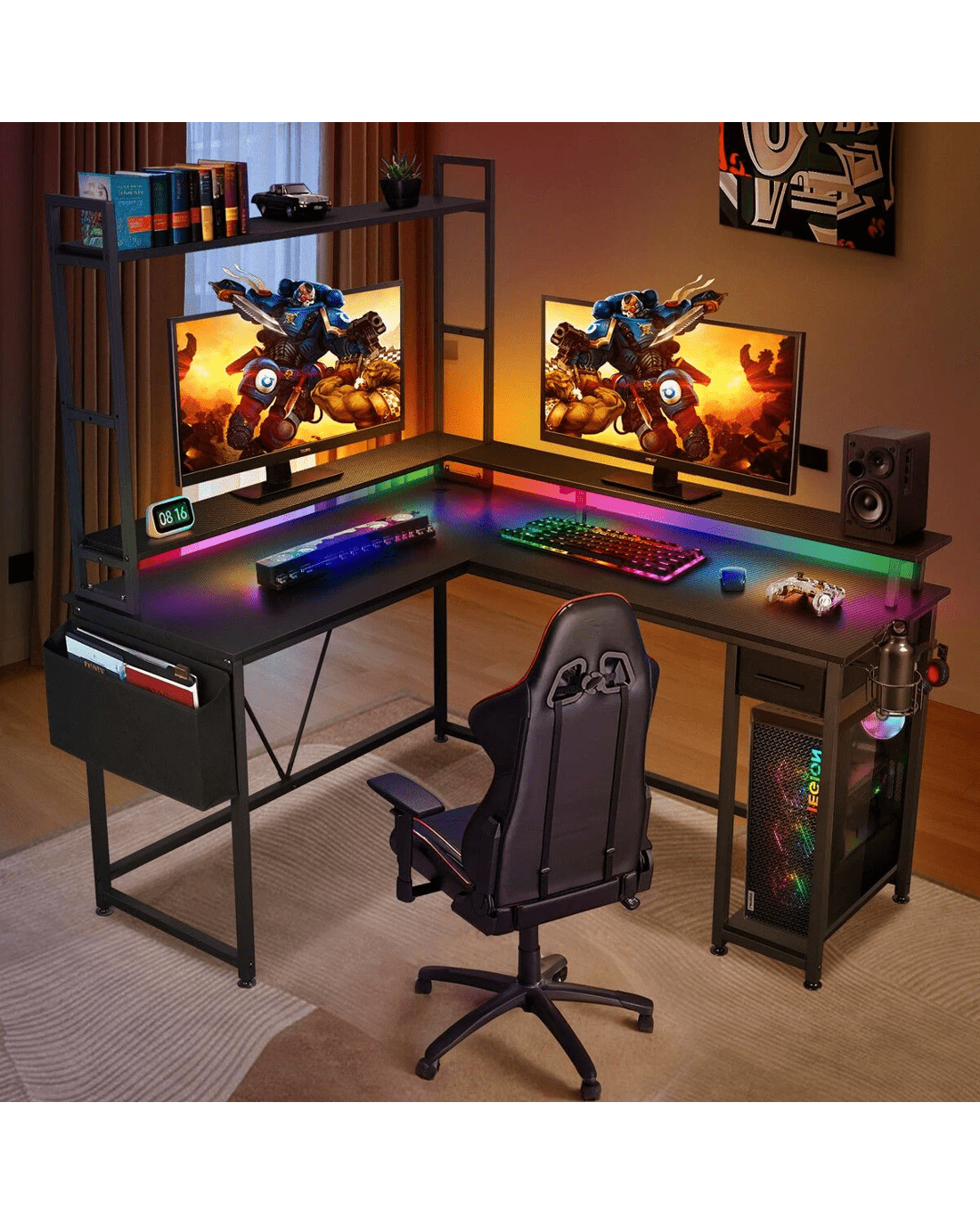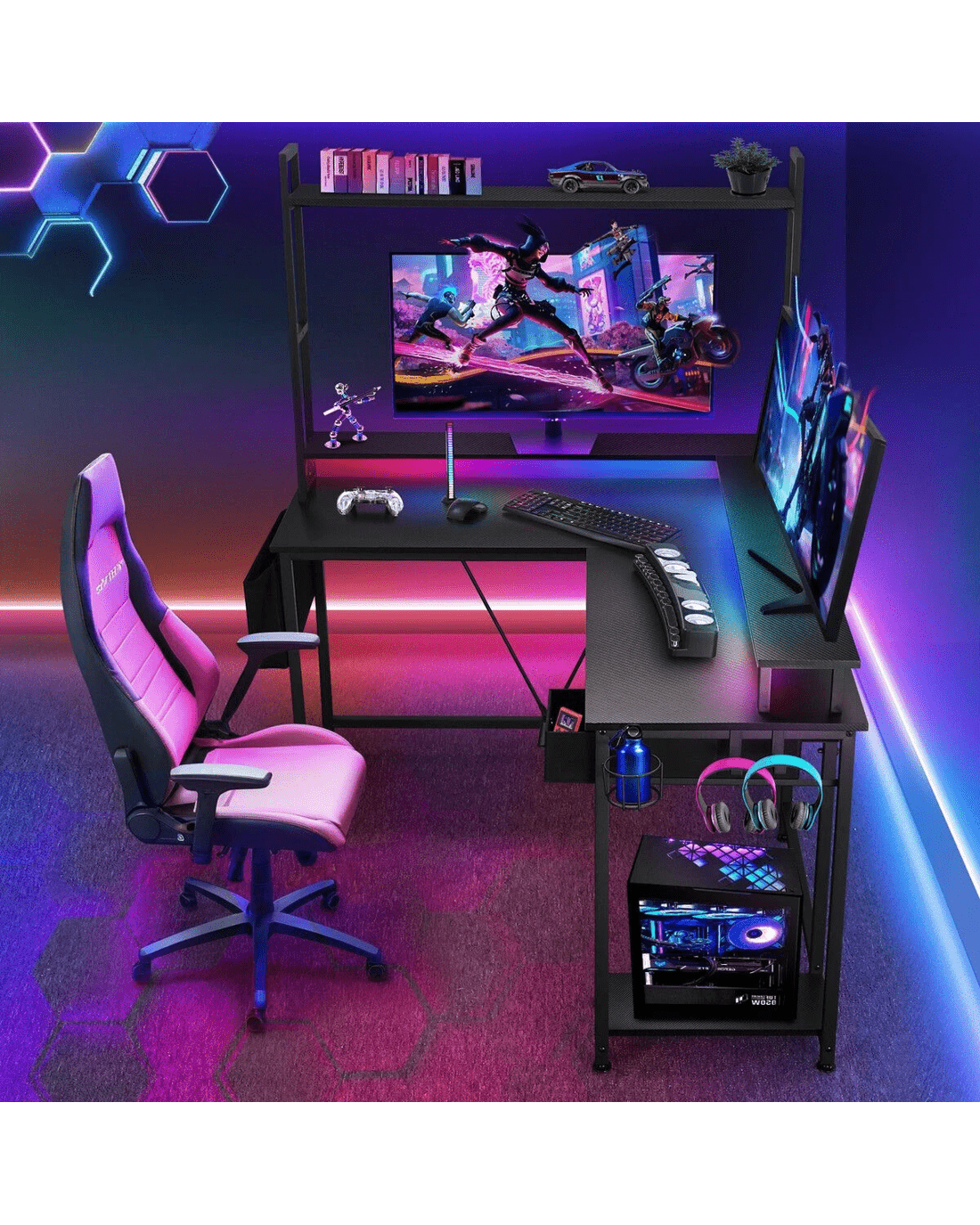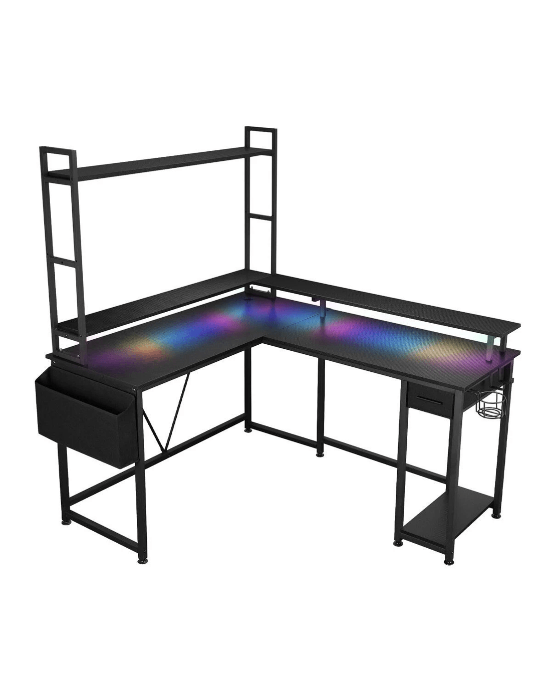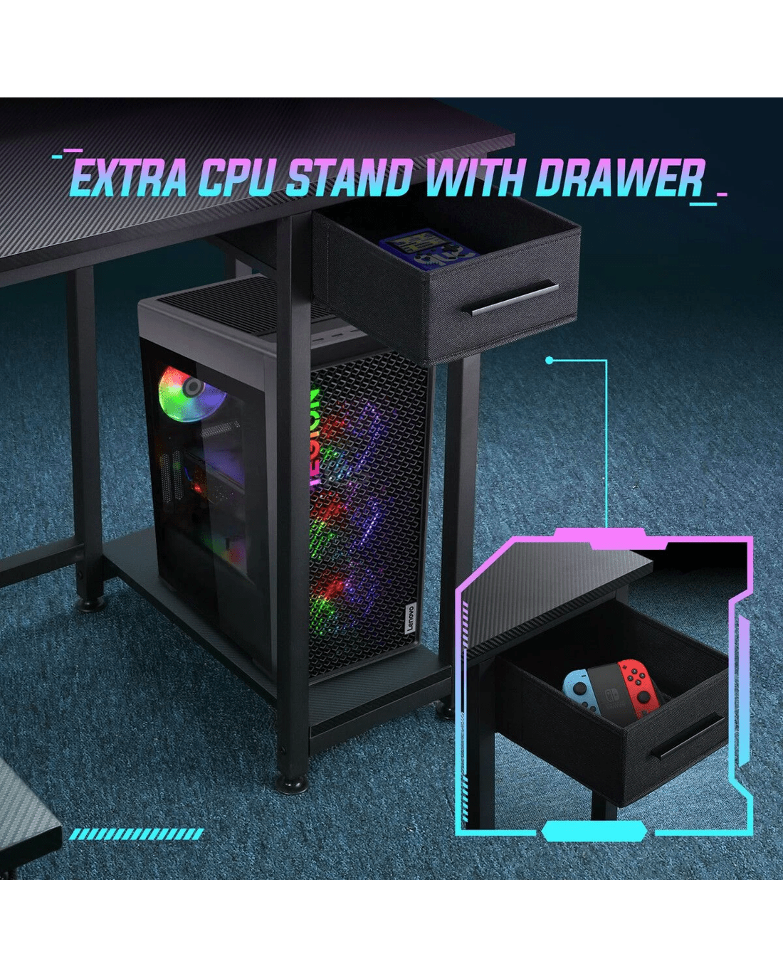 Sold by AuswayAusway Gaming Desk L Shaped Corner Table with LED Lights Carbon Fibre