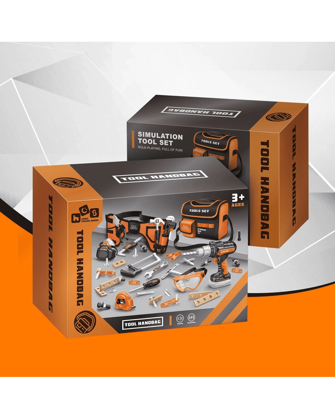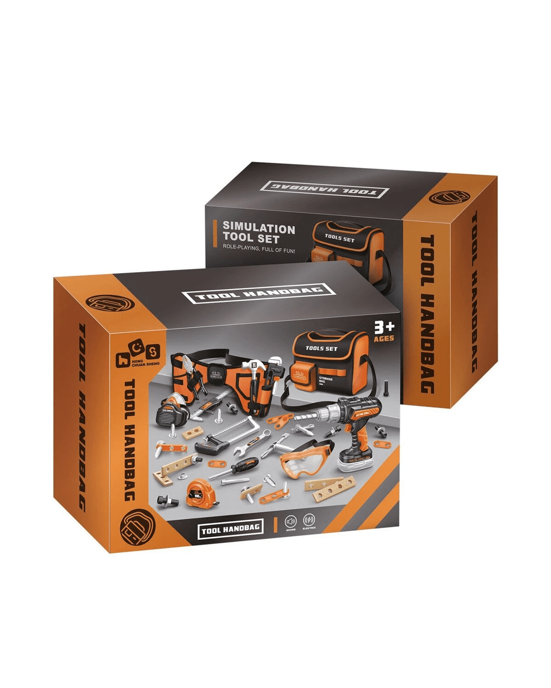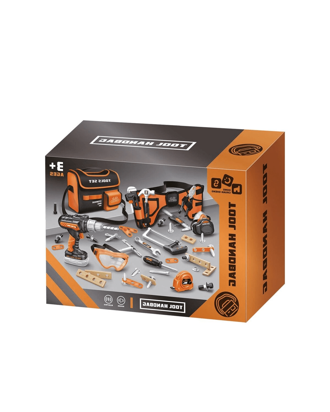 - Includes realistic tools like an electric drill, safety goggles, hammer, saw, screwdriver, pliers, wrench, and more