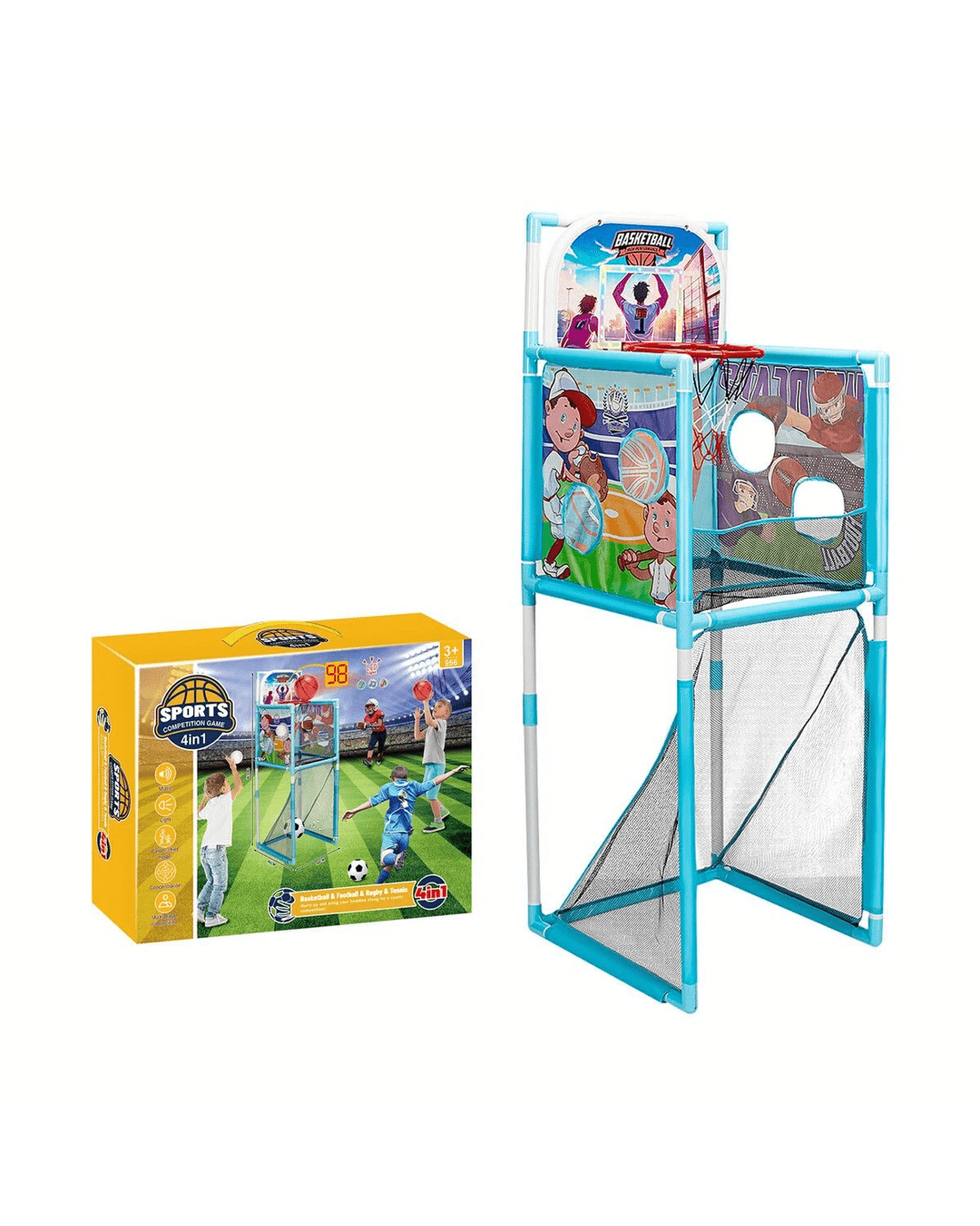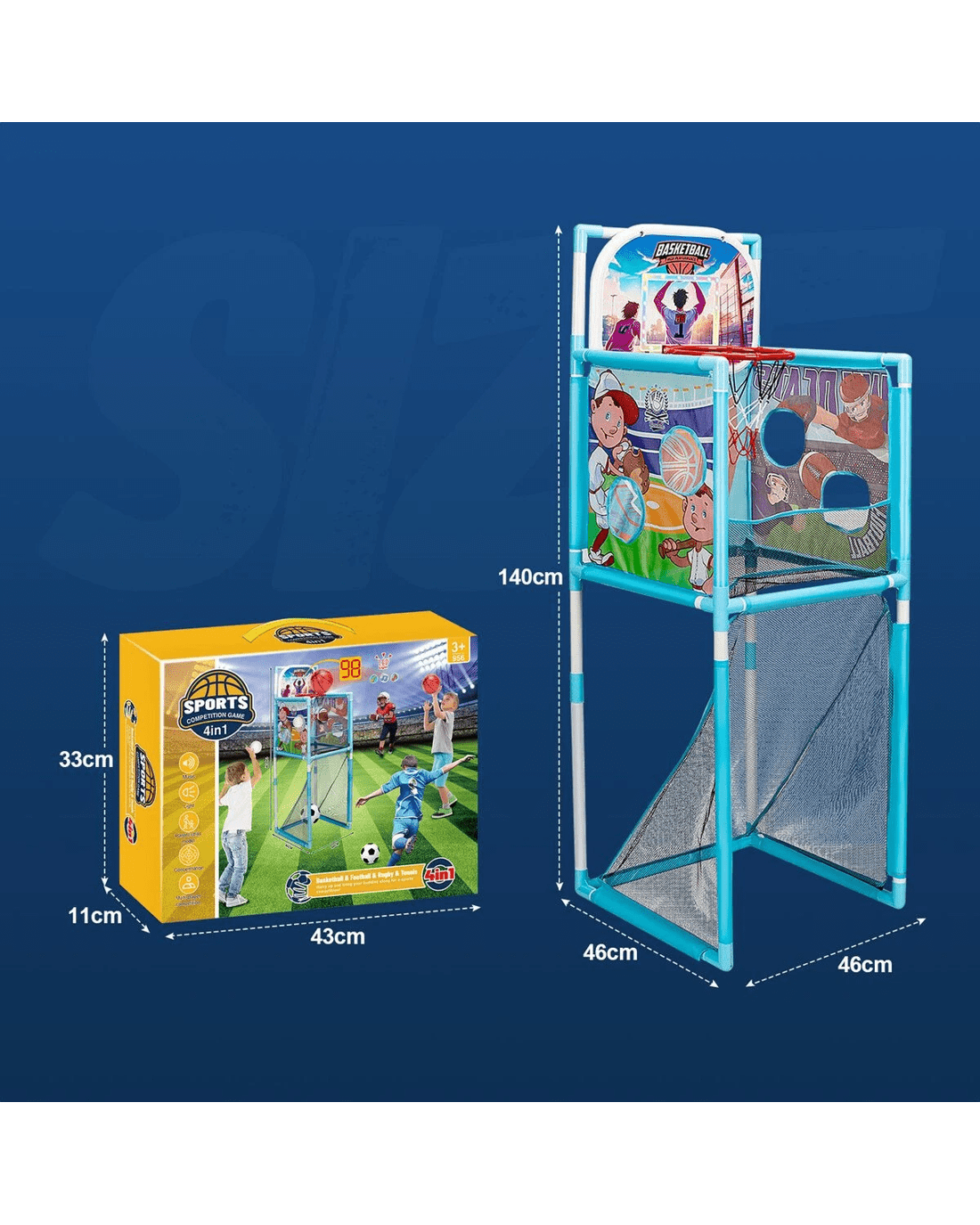 This 5-in-1 Kids Basketball Hoop Set Sports Activity Centre encourages children's participation in various age-appropriate and enjoyable activities. Combining basketball, soccer, rugby, and baseball games, this freestanding basketball stand offers endless ways to play while helping kids develop gross motor skills. Moreover, the basketball hoop features an arcade-style scoring mode with celebratory cheers, bringing the thrill of a real arcade into your home and keeping little players motivated. Made of safe, durable, and non-toxic materials, this basketball hoop playset is perfectly suited for toddlers and young children. Ideal for both indoor and outdoor use, and whether in the living room, garden, or backyard, this kids' basketball stand helps build hand-eye coordination, basic skills, and teamwork, making it a fantastic choice for playdates, family gatherings, or everyday fun.