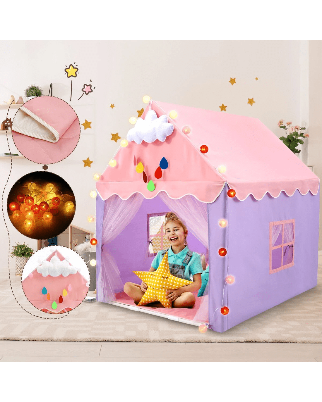 - Playroom Set: Includes cotton thread lights, cloud charms, and a non-slip mat to create a cozy, magical ambience.