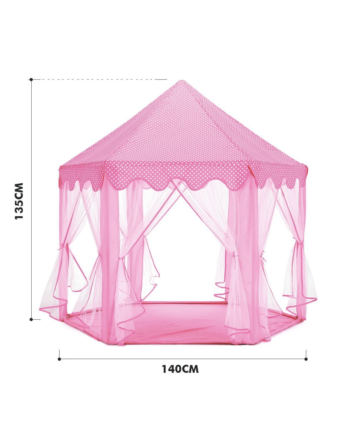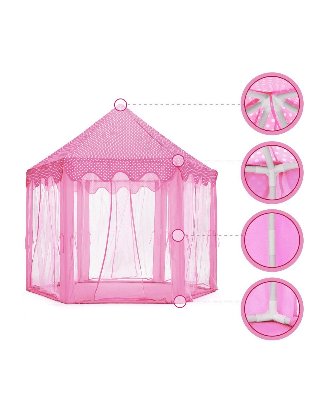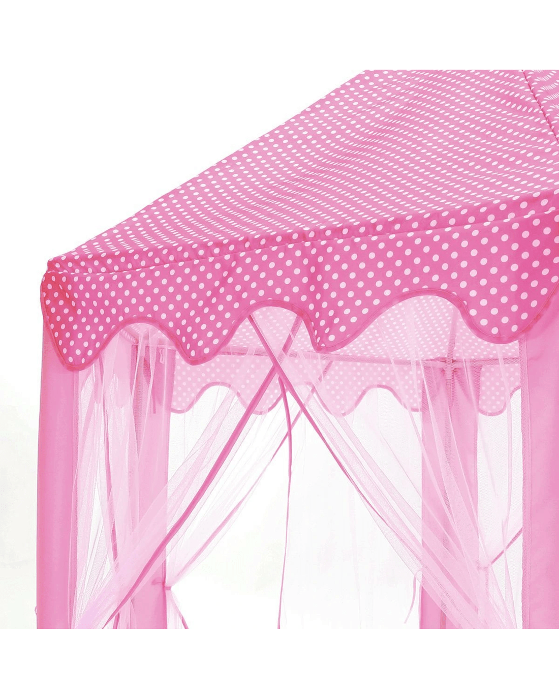 Give your little princess a magical and safe fairy zone to play and rest with the Kids Princess Castle Play Tent Play House. The kids play tent is made of high quality polyester and fabric, ensuring it is durable, comfortable and soft for toddlers to use. The kids' playhouse comes with an interesting hexagonal shape for maximum stability and safety. The kids' tent also includes multiple screens to offer more protection for your princess away from mosquitoes. Easy to assemble and clean, this DIY princess tent is beneficial to parent-children interaction and hand-eye coordination. The playhouse for kids has a wide range of applications, such as in a living room, bedroom, backyard and park.