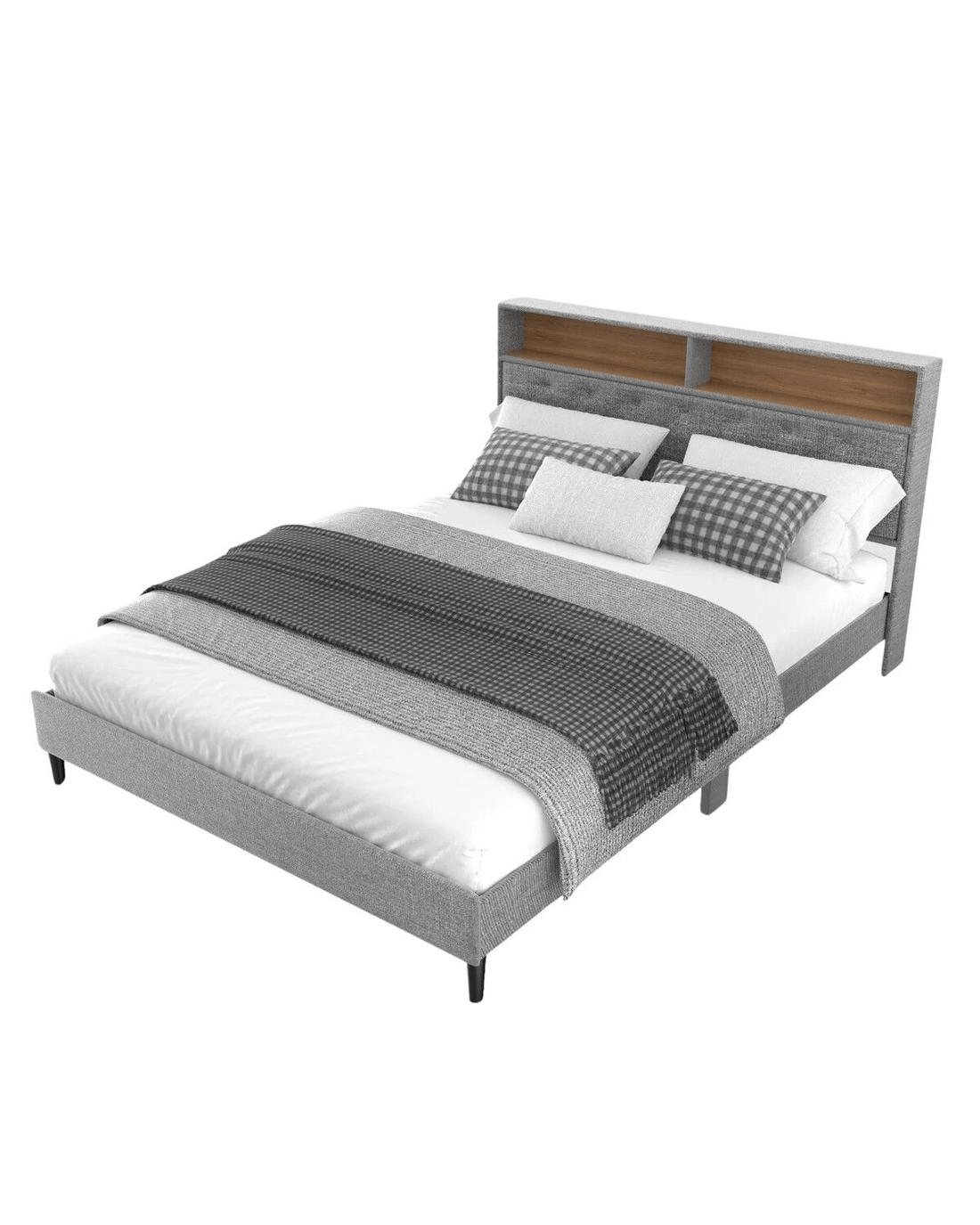 - Storage headboard for placing common small items such as phones and books within easy reach. The bookcase storage headboard can also be opened, providing you with a hidden storage space that is very convenient and practical