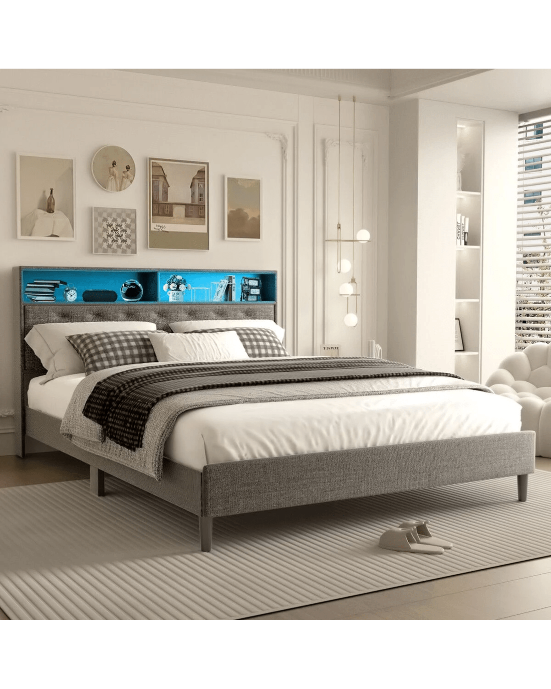 - Attached with LED Lights, this modern bed frame can match a variety of bedroom styles perfectly. Thick and dense foam padding gives you a comfortable touch while providing comfortable support for reading or lounging in bed