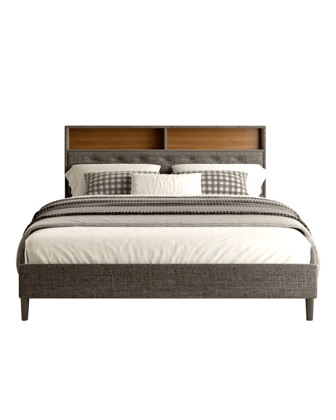 - Our platform beds are expertly engineered with upholstered linen fabric and tufted button headboards