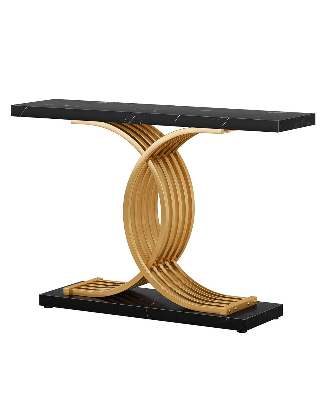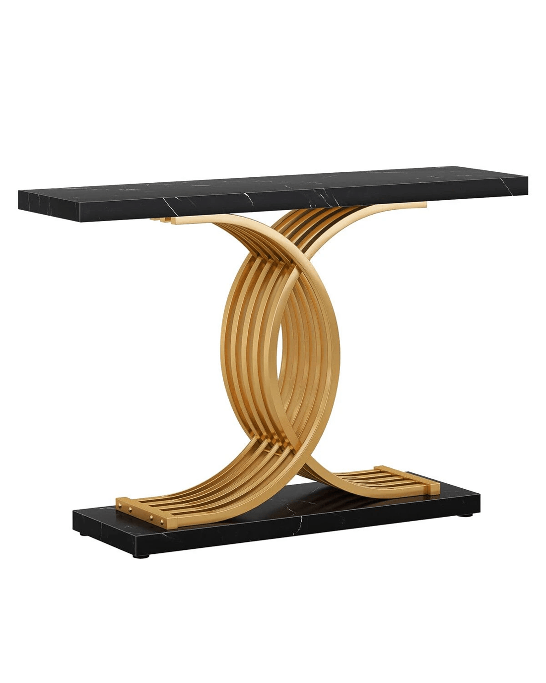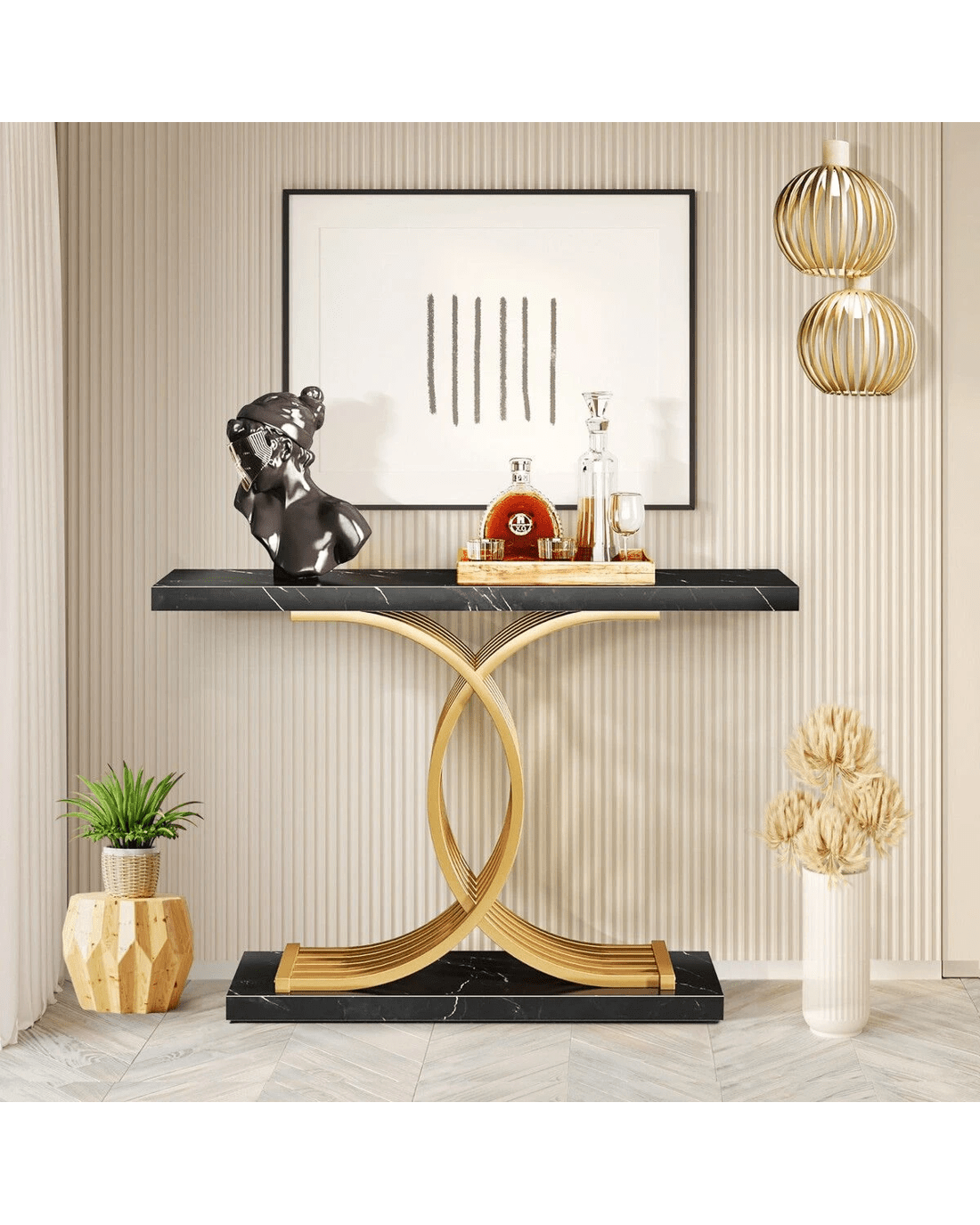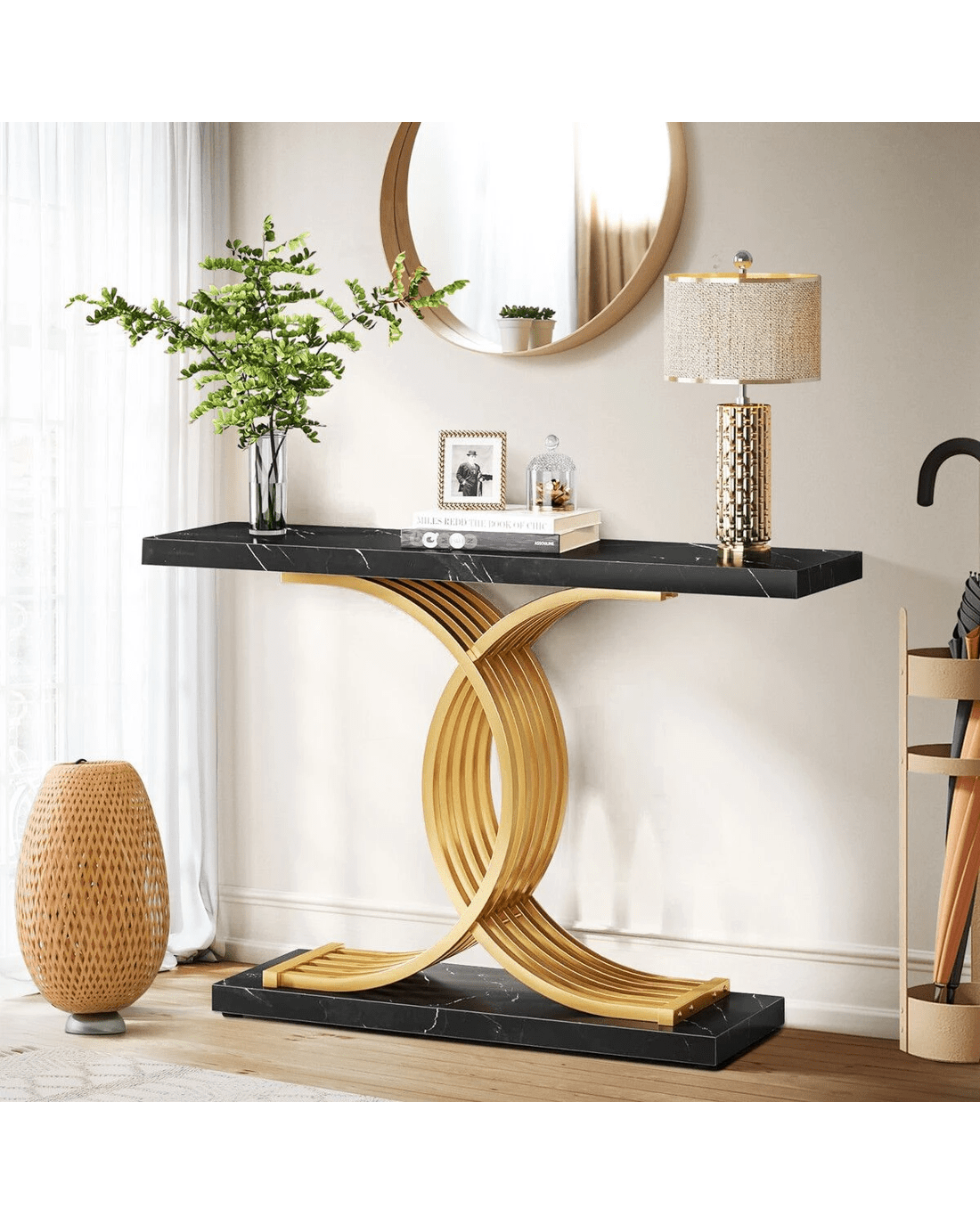 - Modern Glam Design: Sleek faux black marble top, clean lines, and a geometric gold metal base add a touch of luxury to any space, ideal for hallways, entryways, living rooms, or behind the sofa.