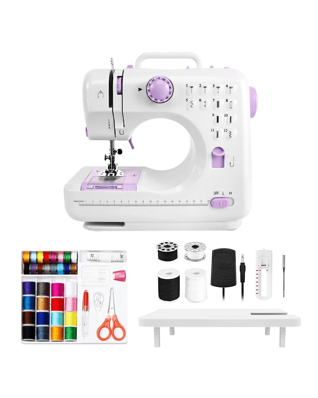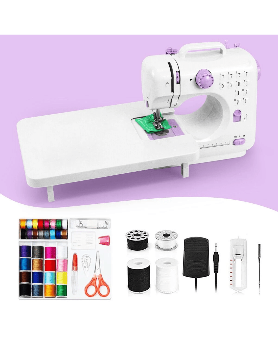 Master the art of sewing with our eco-friendly mini sewing machine. Its 12 built-in stitch patterns empower you to tackle various projects, from basic repairs to intricate creations. Besides, the reverse sewing function ensures secure and durable seams. Equipped with a multi-use accessory kit and an enlarged extension table, this sewing machine seamlessly handles large fabric pieces. Harness the power of two control modes: foot switch control and manual button control. Even better, its compact size and handle guarantee effortless portability, while the intuitive threading guide simplifies setup. Versatile and adaptable, the sewing kit offers two power modes for home and outdoor use. Its lighting lamp illuminates your workspace, allowing for comfortable sewing even in low-light conditions.