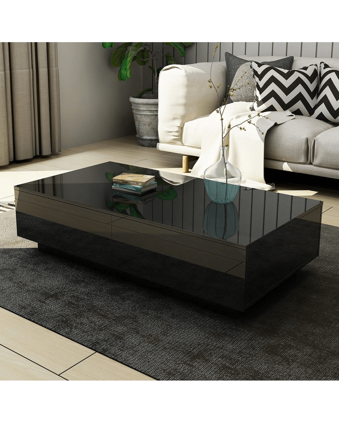 Position this modern coffee table in the front of sofa or any places you want to treat your family and friends. The large flat tabletop is a perfect rest for your drinking glasses and other decorations which is the reflection of your taste. The coffee table has four large drawers with built-in push to open mechanism, ensuring you take the necessities in and out effortless. Constructed in quality material with high gloss black coating finish, the coffee table online guarantees to serve for years in your living room or other places.