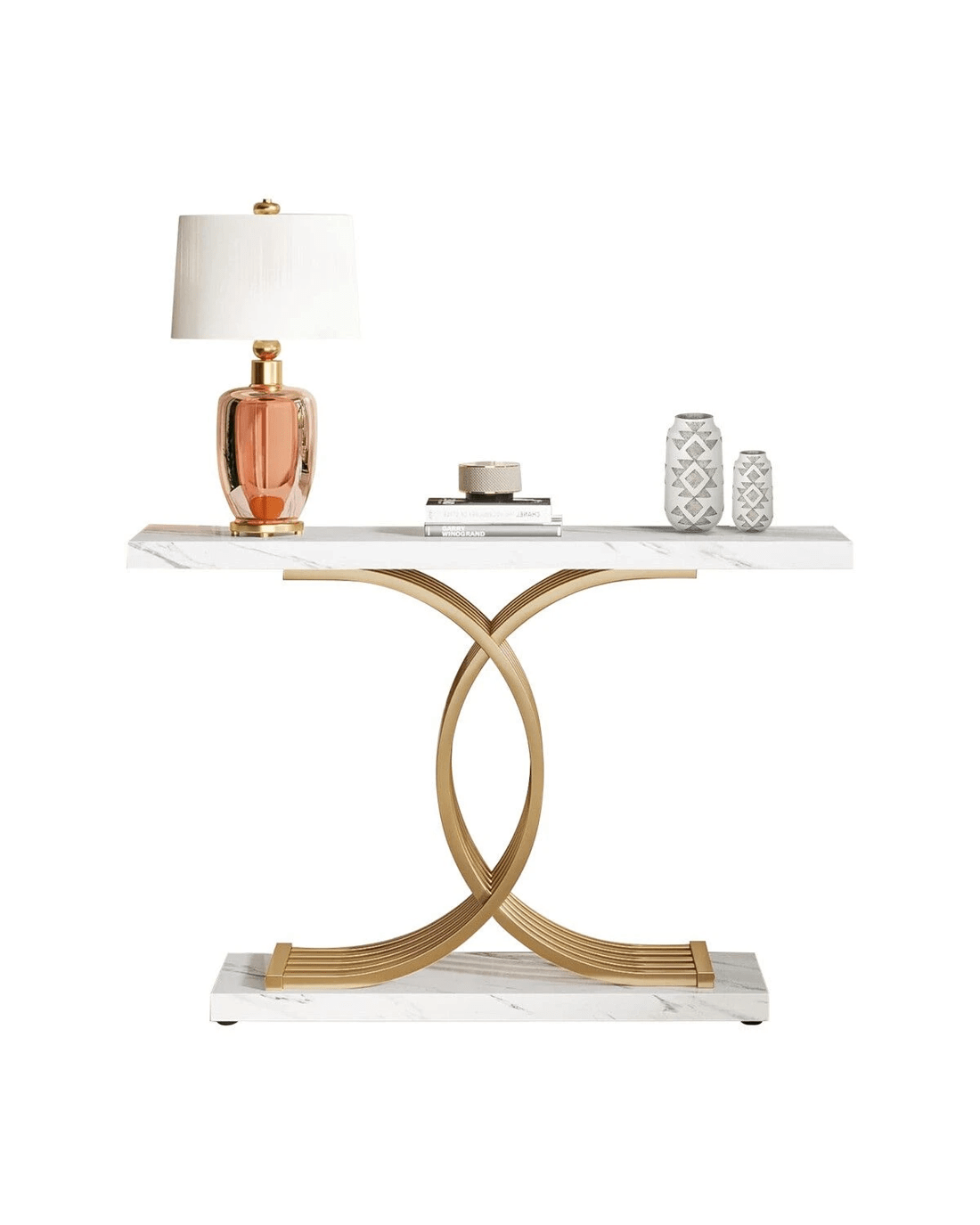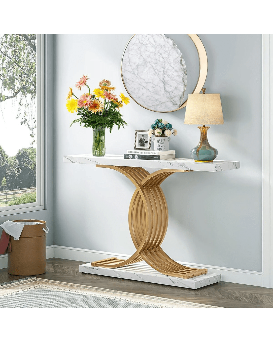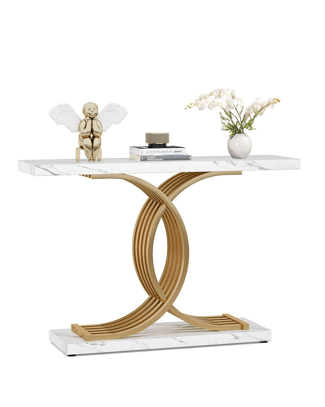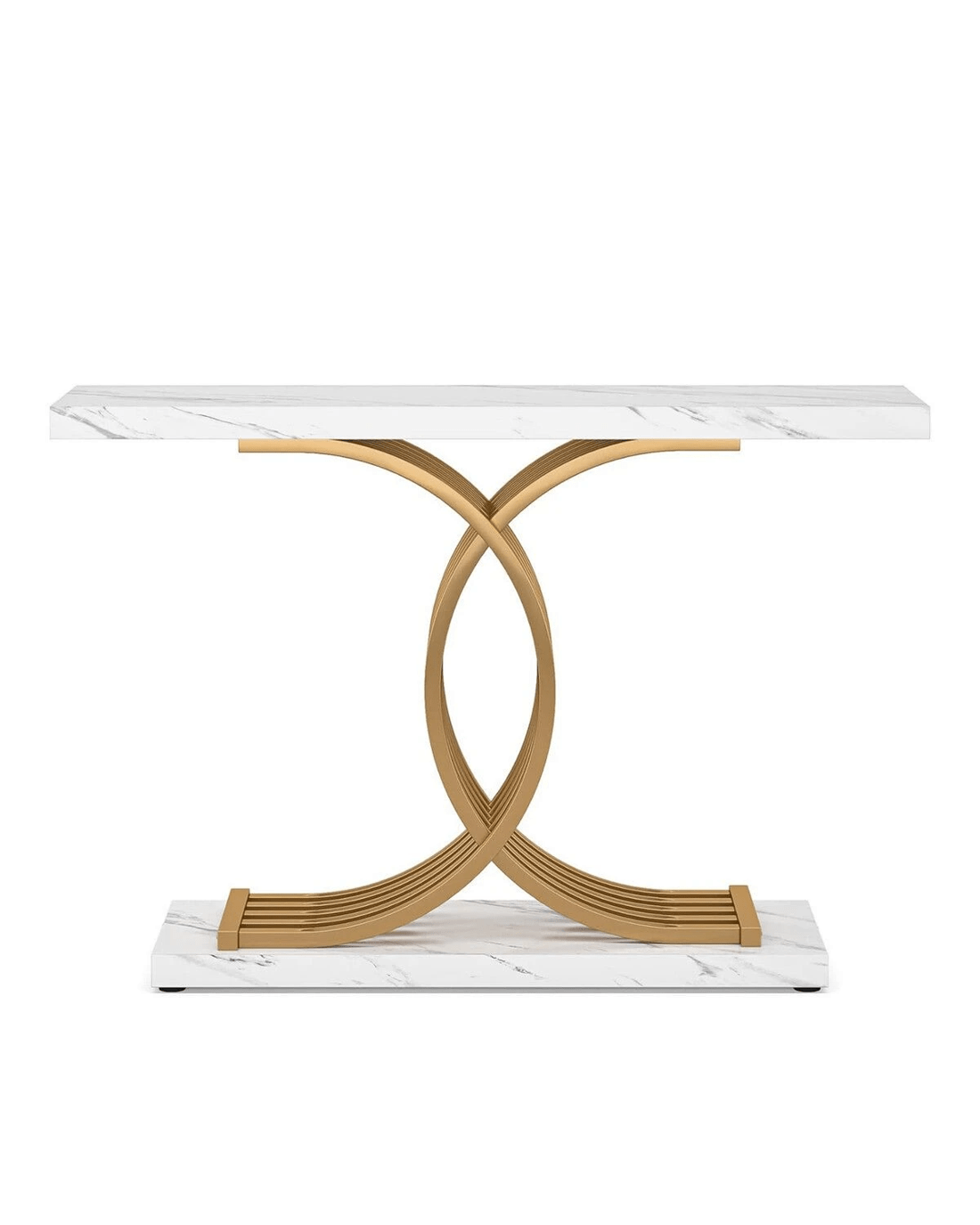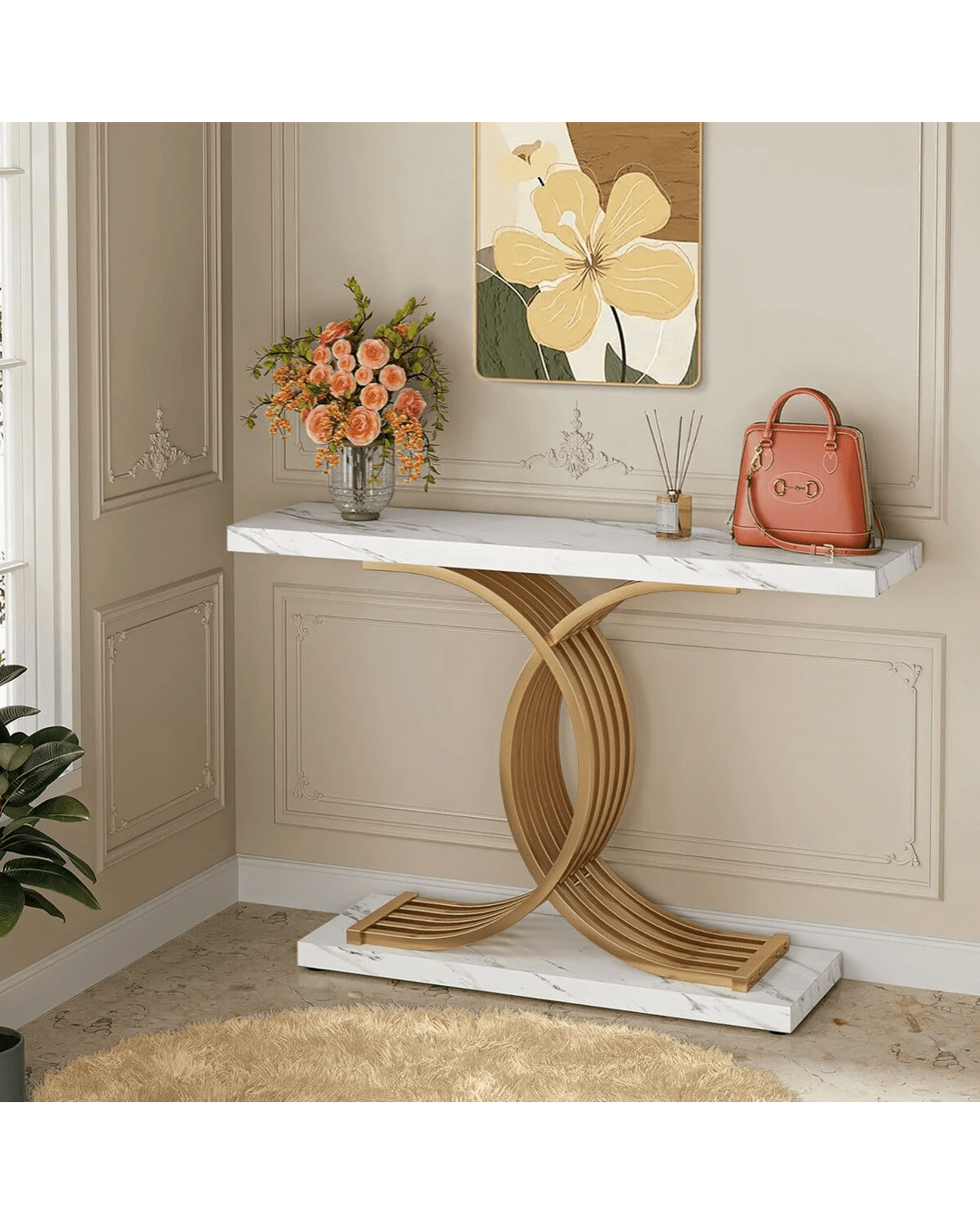 - Modern Glam Design: Featuring clean lines, a faux white marble finish, and a striking geometric gold metal base, this console table adds a luxurious contemporary touch to any space, perfect for the hallway, living room, entryway, or behind the sofa.