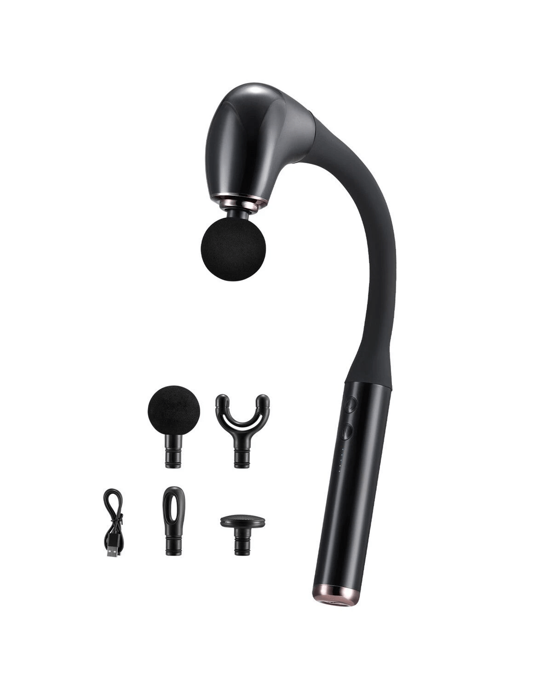 This portable muscle massage gun with an extended handle is the best way to relax, restore and recharge. Powered by a premium 15W brushless motor that delivers 30% more power and stronger torque than standard motors, this massage gun delivers deeper, more effective muscle penetration. The ergonomic curved handle allows for precise, strain-free targeting of hard-to-reach areas like the spine, shoulders, and glutes, offering full-body relief without twisting your wrist. Choose from 5 massage intensities and 4 interchangeable heads to suit different body types and recovery needs, making it ideal for athletes, fitness enthusiasts, office workers, seniors, and anyone seeking muscle relief. The ultra-quiet motor operates at under 45dB and ensures consistent performance without stalling or overheating, even during extended use. Compact and lightweight, this electric back massager is perfect for travel or everyday use, whether at the gym, in the office, or at home. Convenient Type-C charging fully powers the device in approximately 3 hours, making it ideal for quick, on-the-go relief.
