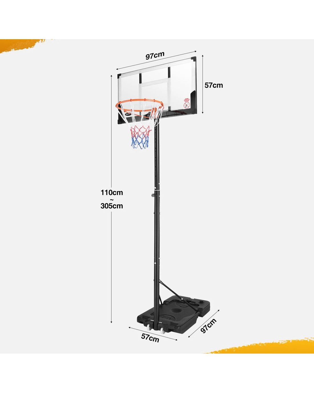 Ausway Portable Basketball Hoop System Adjustable Stand 1.1m-3.05m