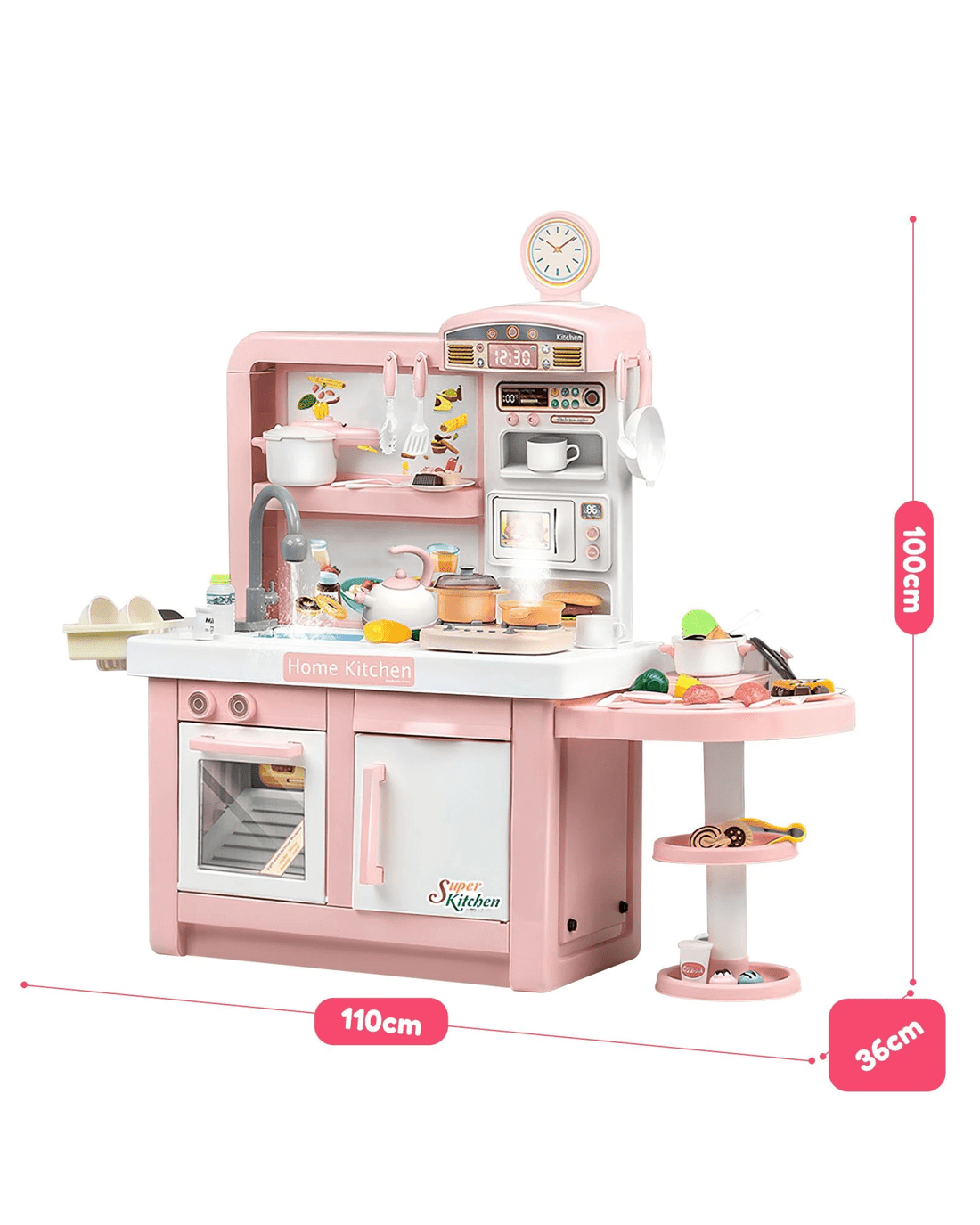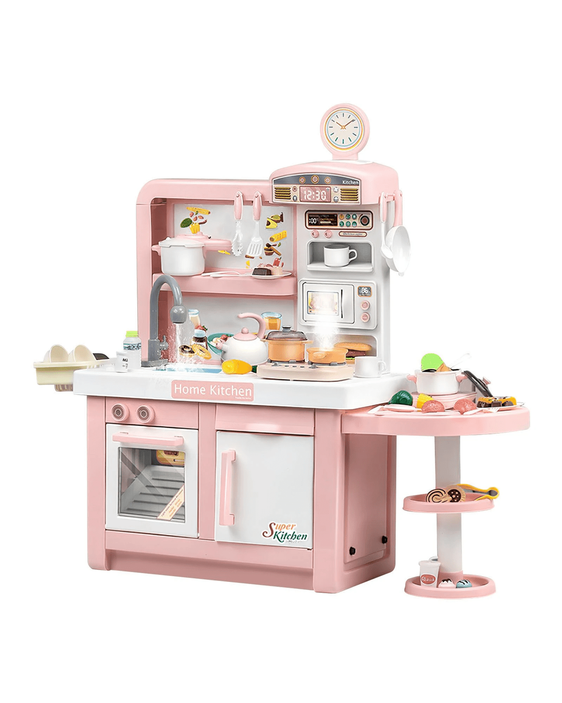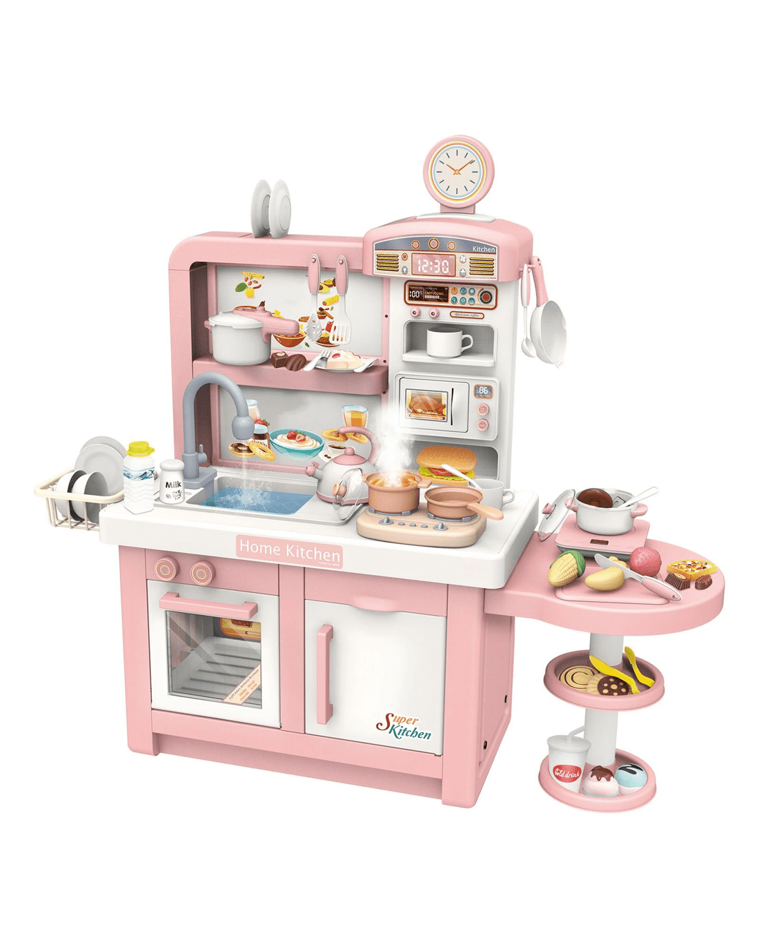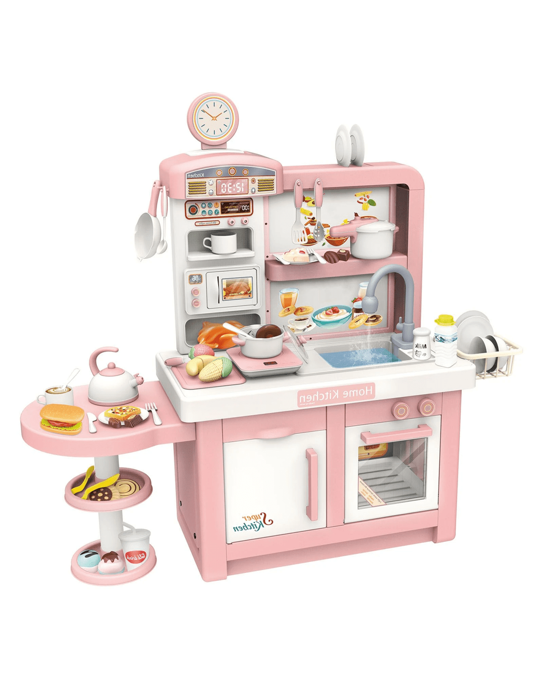 Entice your children to hours of playing by offering them this Pretend Kitchen Play Role Cooking Toys Set Cookery Cookware Playset. The pretend play set is packed with exceptional details and stunning features, including stovetop burners with electronic lights and sounds, a 180-degree rotatable faucet, colourful cooking tableware and vivid patterns, developing your toddlers' imagination and giving them a realistic and interesting cooking experience. Crafted from environmentally-friendly materials, the role-play toys are non-toxic, odourless and safe for children to use. Suitable for three years above, these pretend play toys can help boost children's recognition, creativity and sociability with their partners. This pretend play kitchen is durable to last for years and easy to clean.
