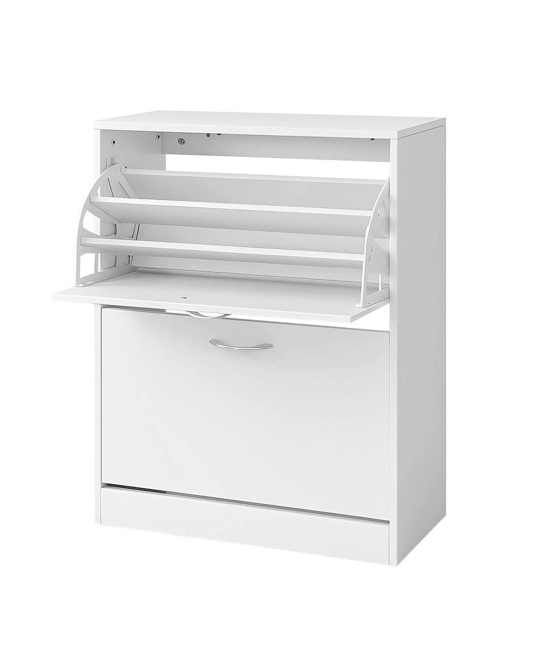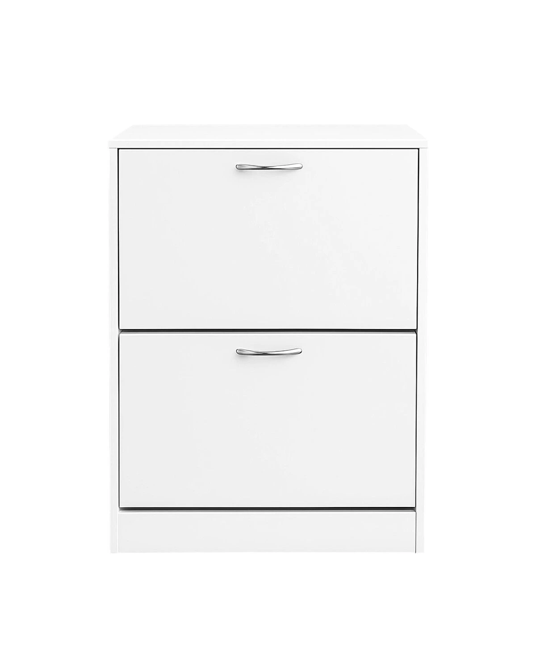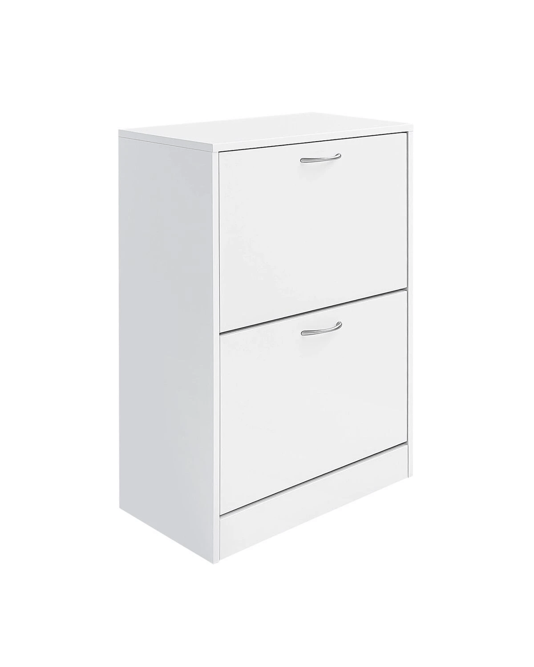 Tidy up your front entry for a more organised and inviting home with this shoe cabinet. The hidden shoe rack is made from sturdy particle board construction that delivers rock-solid stability and long-lasting durability, transforming any chaotic corner of your entryway, hallway, or porch into a tidy and serene oasis. The all-in-one centralised, space-saving unit offers roomy space to fit everyone's footwear, from kids' sneakers to men's boots and women's heels. The thoughtful design continues with a convenient and comfortable handle that provides effortless access while ensuring safety for little hands. Moreover, with three adjustable shelf spaces across two flip-out drawers, you can easily customise the interior to accommodate everything from slim flats to tall boots, all while enjoying the sleek top surface that's ideal for your daily essentials or a touch of decor.